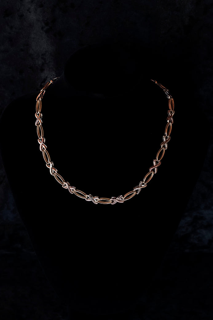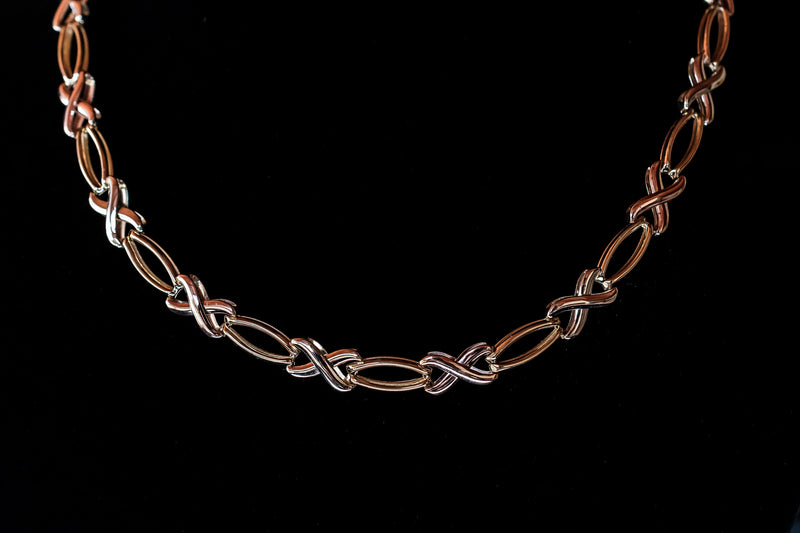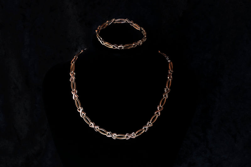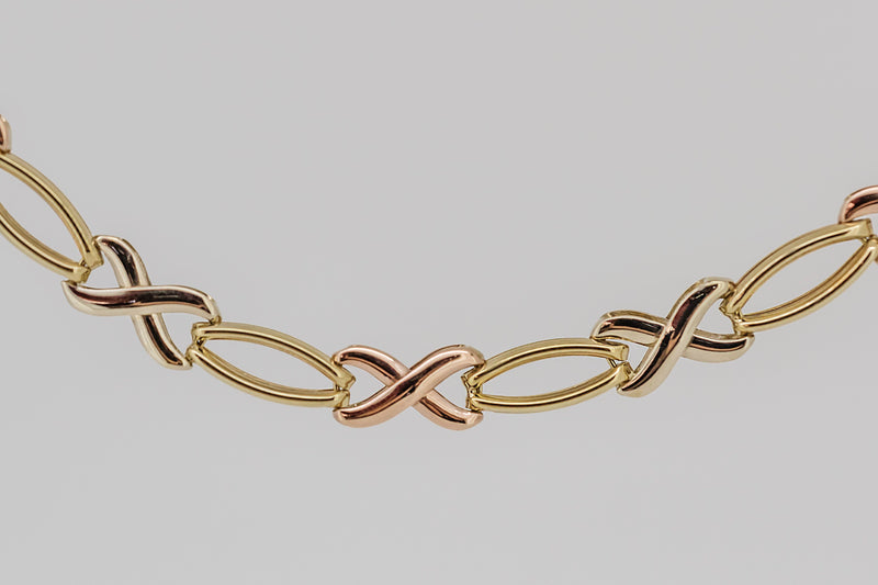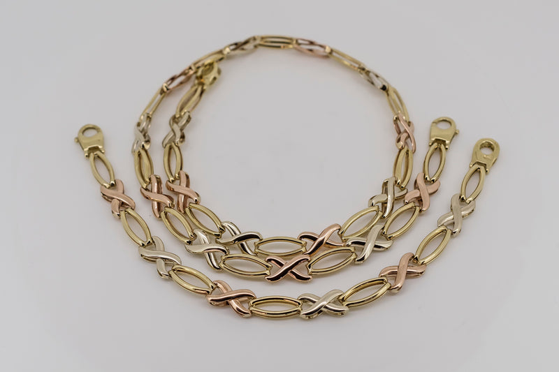 9ct solid white, rose and yellow gold tri tone bracelet and necklace