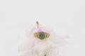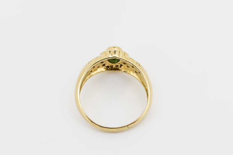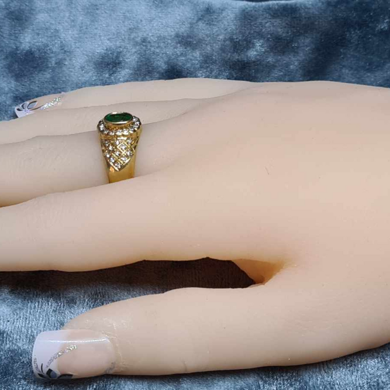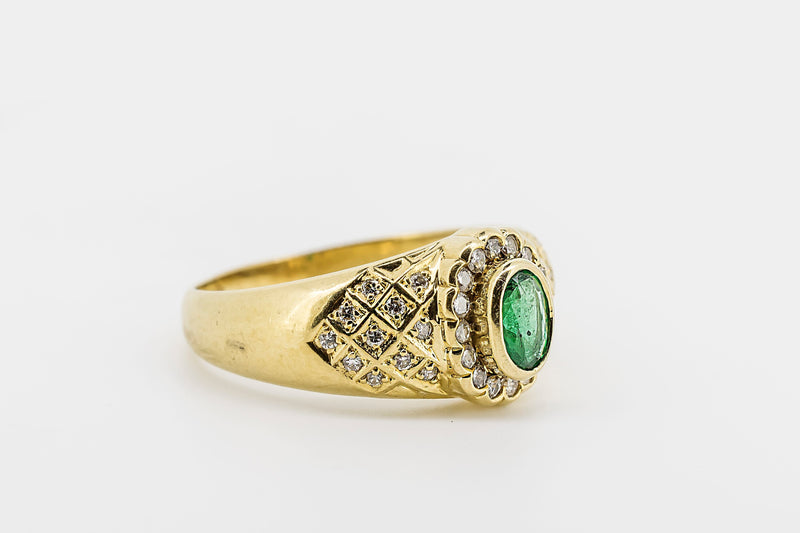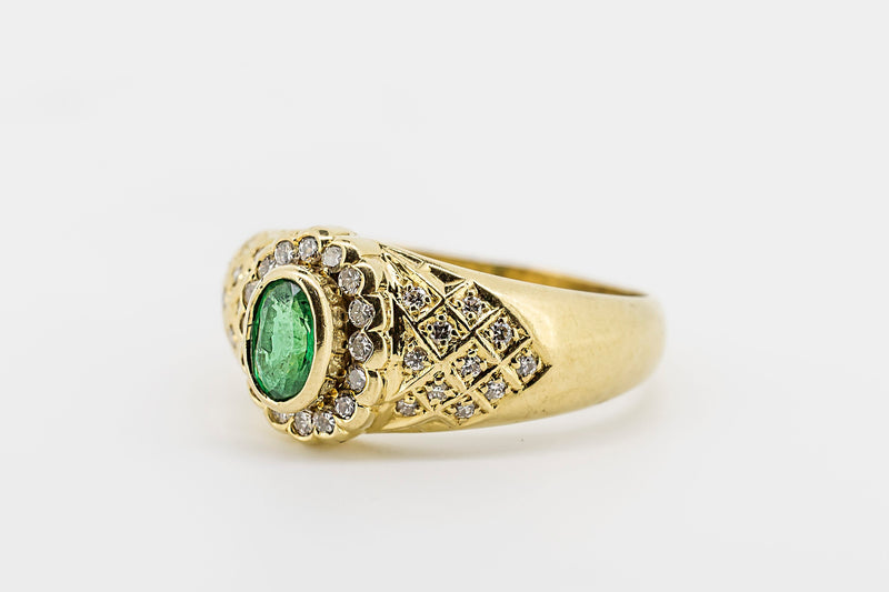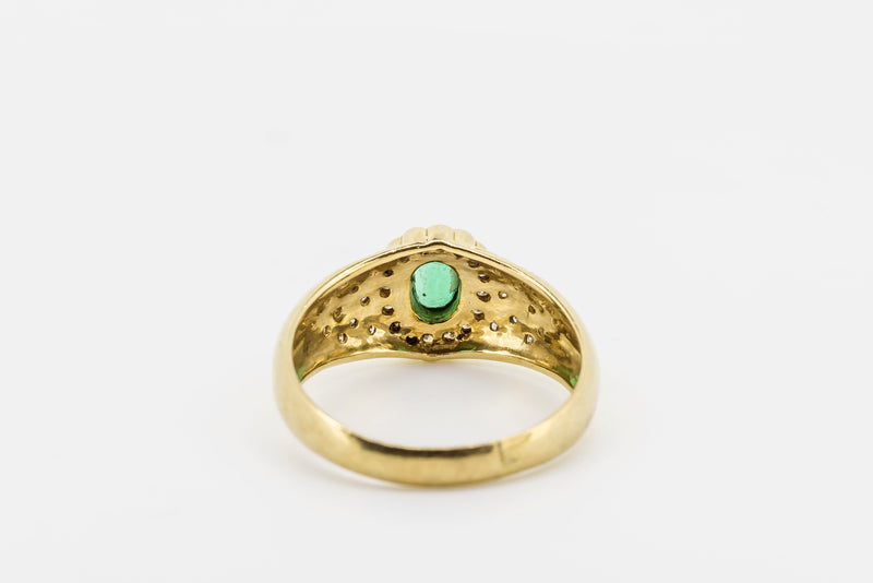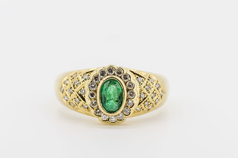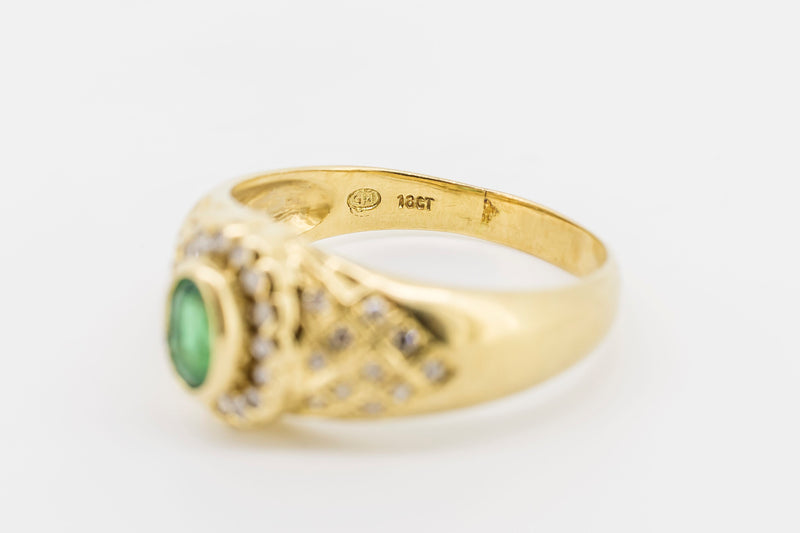 18CT Yellow Gold and Diamond Ring with Green Emerald Centre Stone #L107