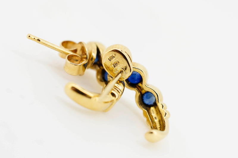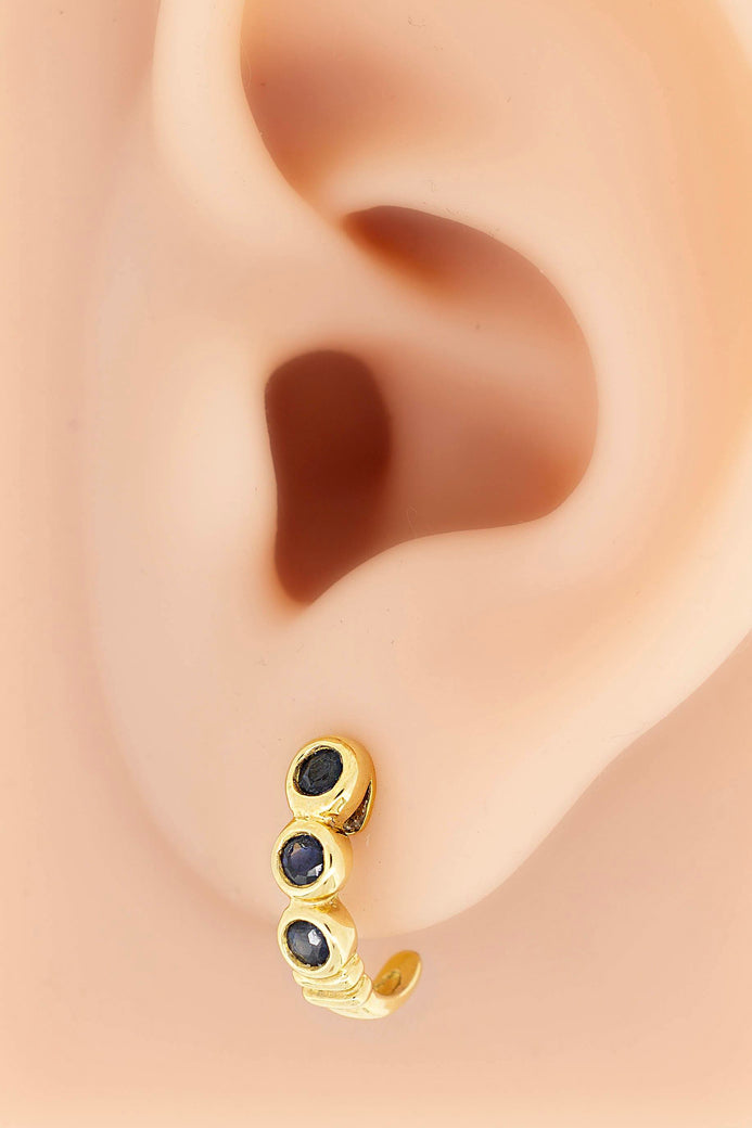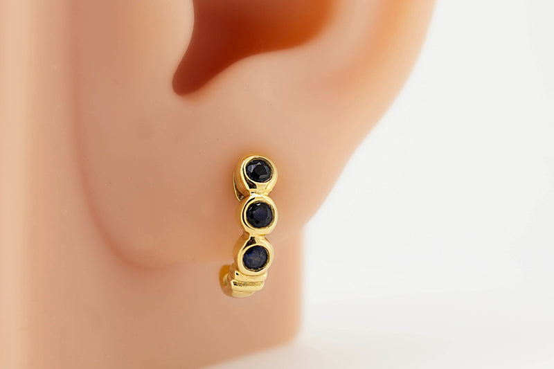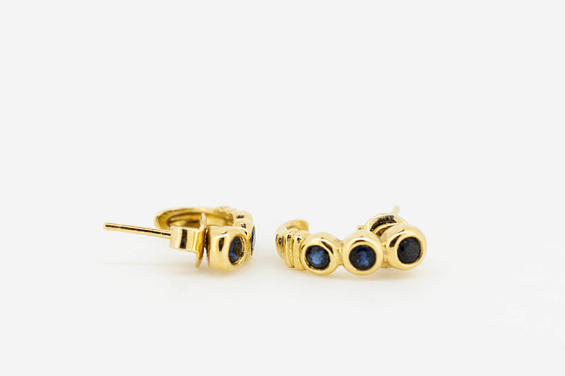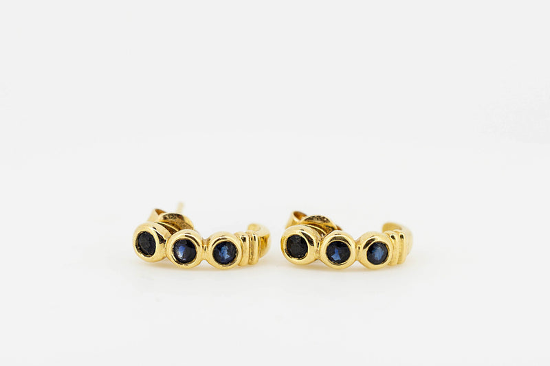 18ct Yellow Gold Dark Blue Sapphire Earrings # 27870-1