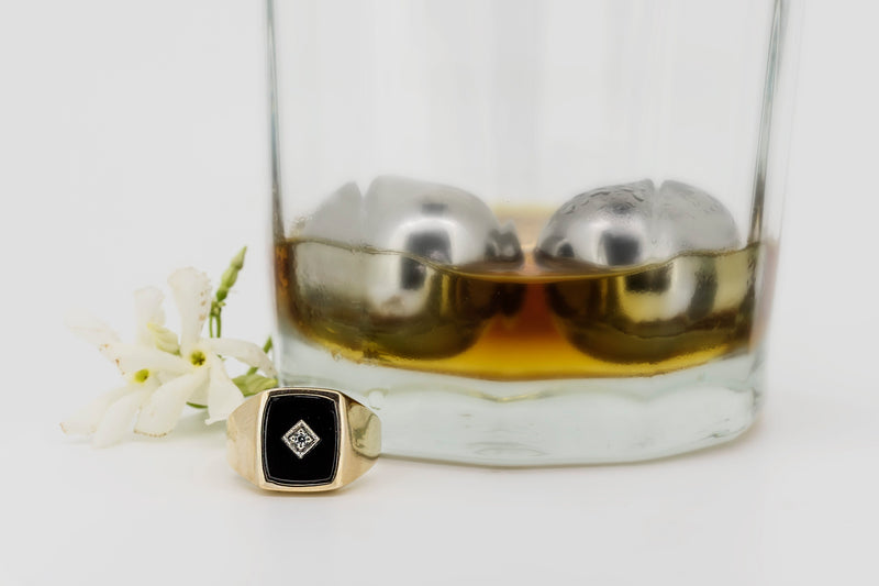 9CT GOLD RETRO BLACK ONYX AND DIAMOND RING #MBSR