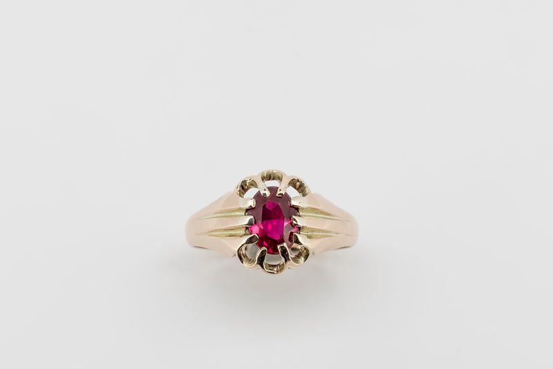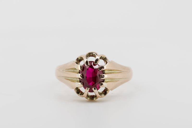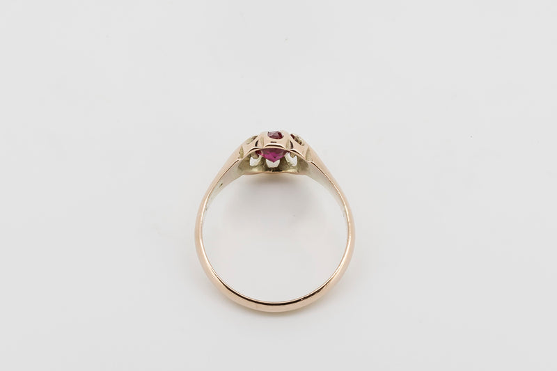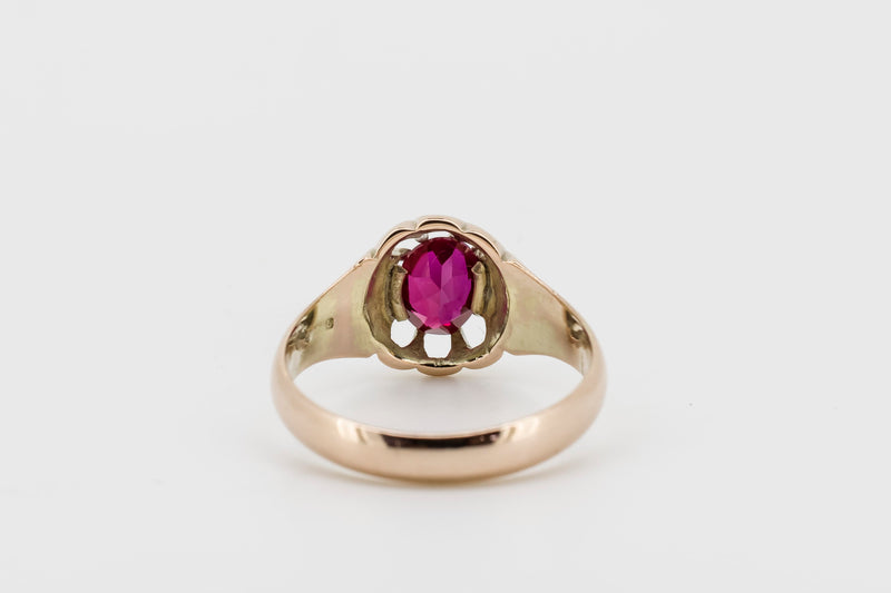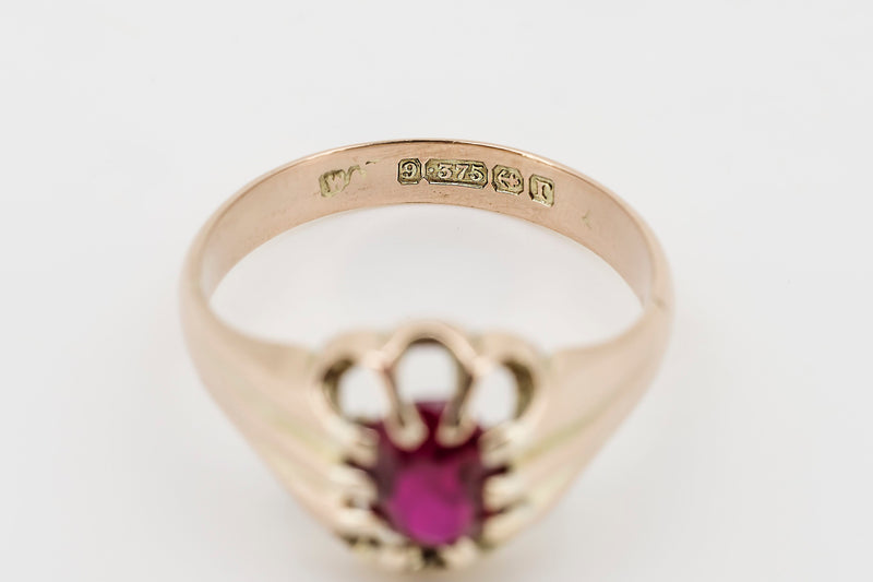 9CT ROSE GOLD & GARNET ANTIQUE RING