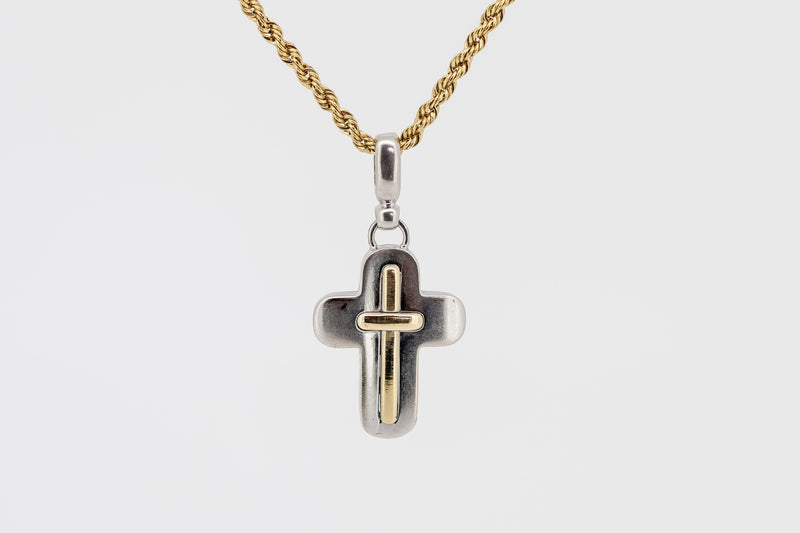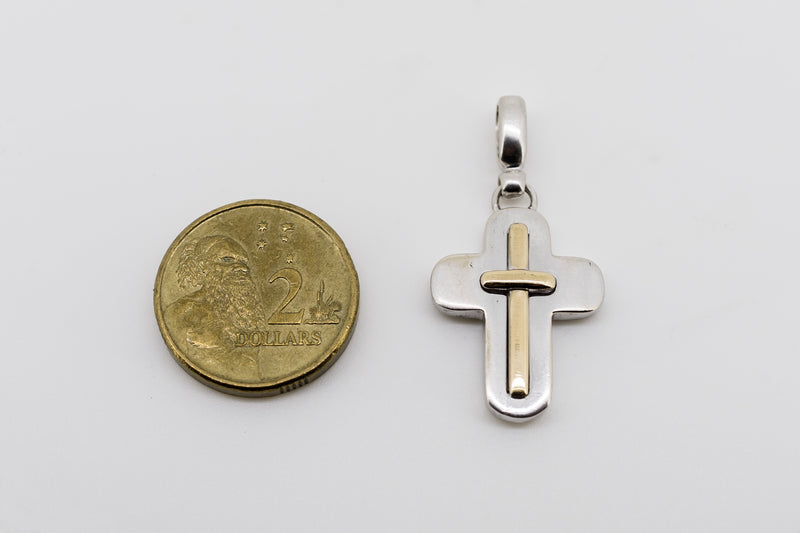 18CT WHITE AND YELLOW GOLD CROSS