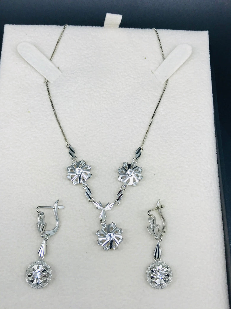 This set is absolutely stunning. The white gold compliments the sparkly diamonds beautifully. These would suit a formal night out.