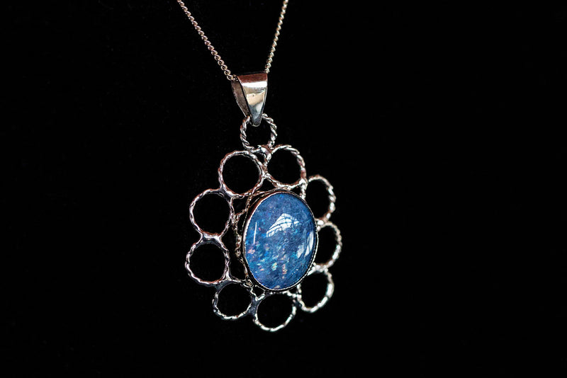 9CT GOLD OPAL PENDENT AND CURB CHAIN