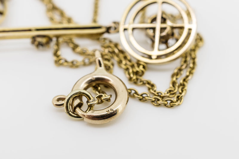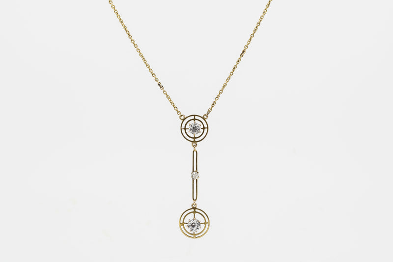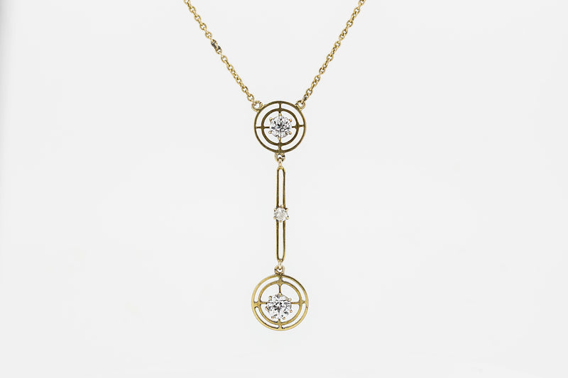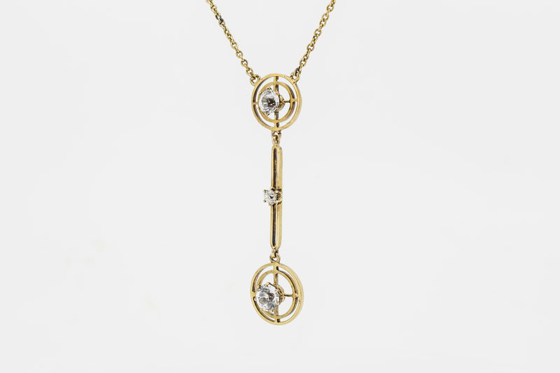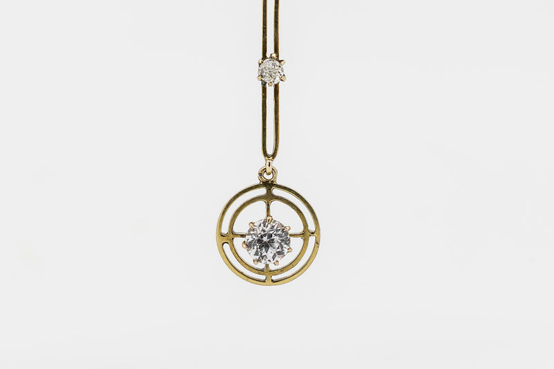 Antique pendant and necklace with old mine cut diamonds in 10ct gold