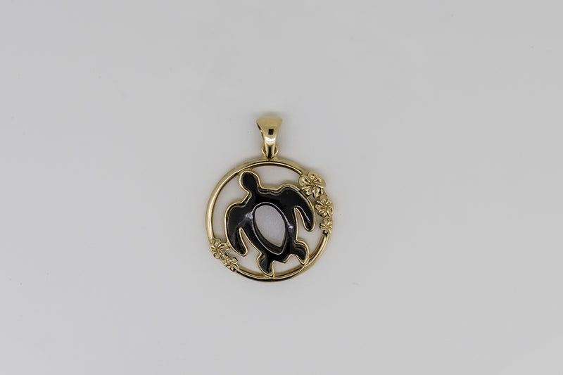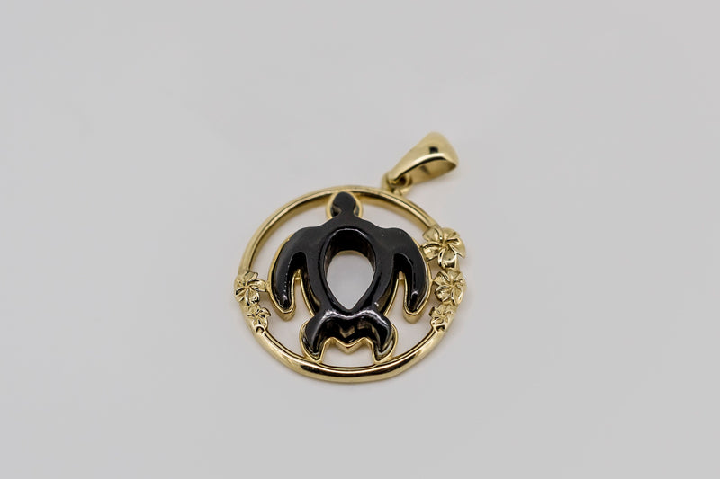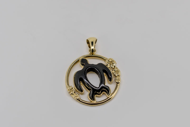 Hawaiian Black pearl turtle pendant with solid 14k yellow gold