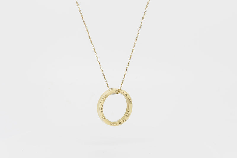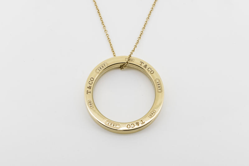 Tiffany & Co 18k Yellow Gold Large One Inch 1837 Circle Pendant & Necklace 1837 collection