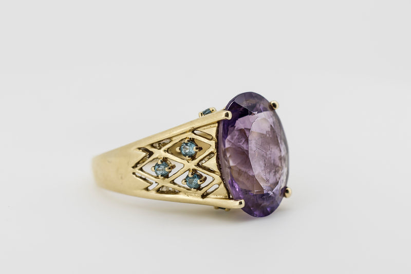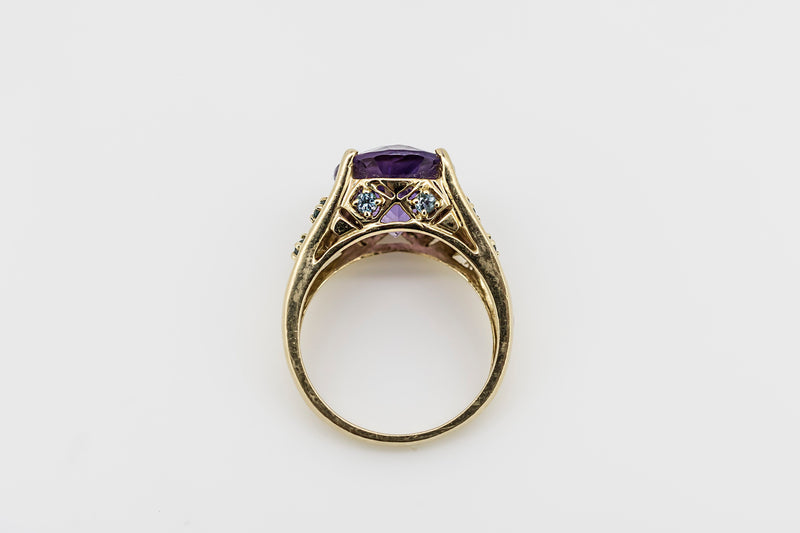 14ct Yellow Gold Amethyst and Topaz Cocktail Ring #BPRS