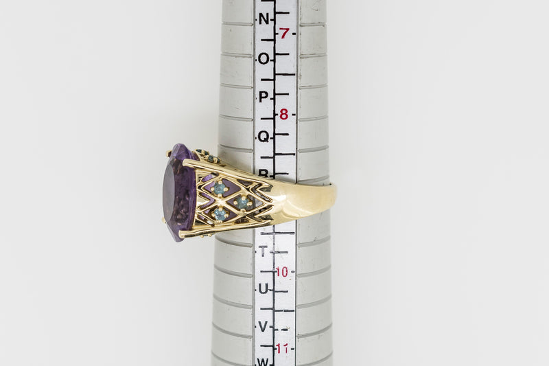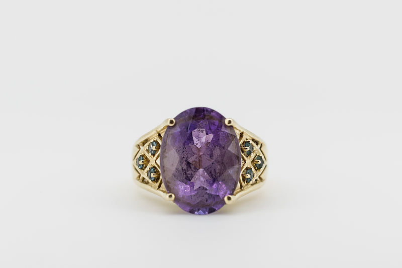 Elevate your style with our dazzling 14CT GOLD AND AMETHYST COCKTAIL RING. The beautiful combination of gold and amethyst will add a touch of elegance to any outfit. Perfect for special occasions or everyday wear. A must-have for any jewelry collection!