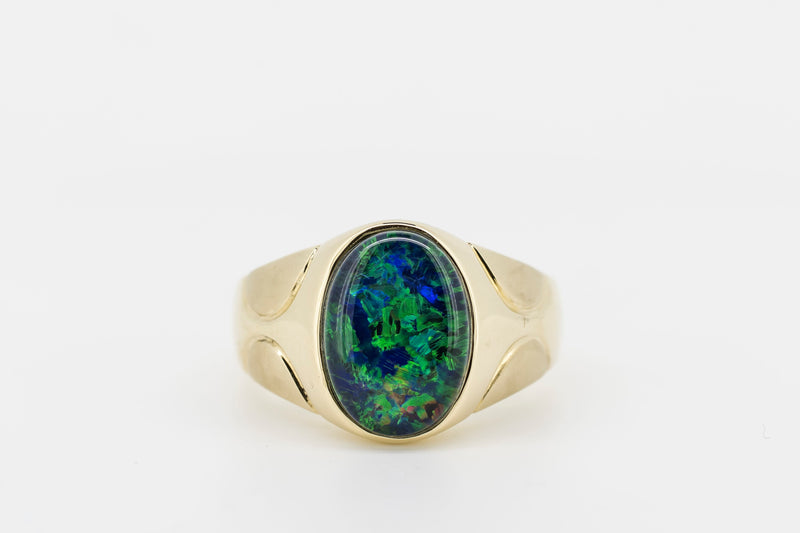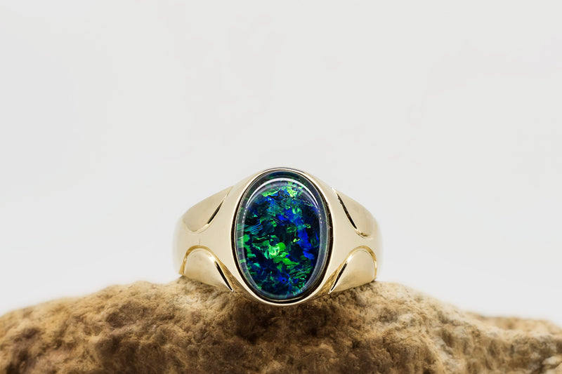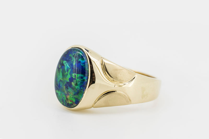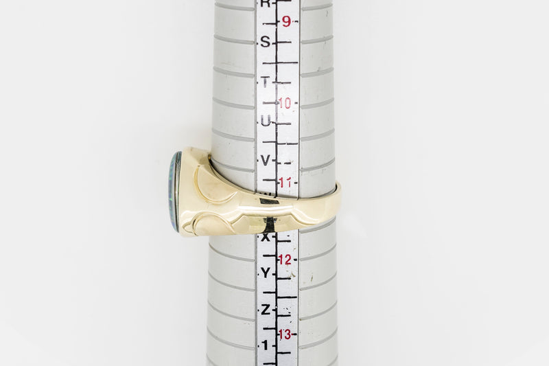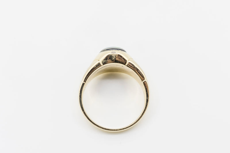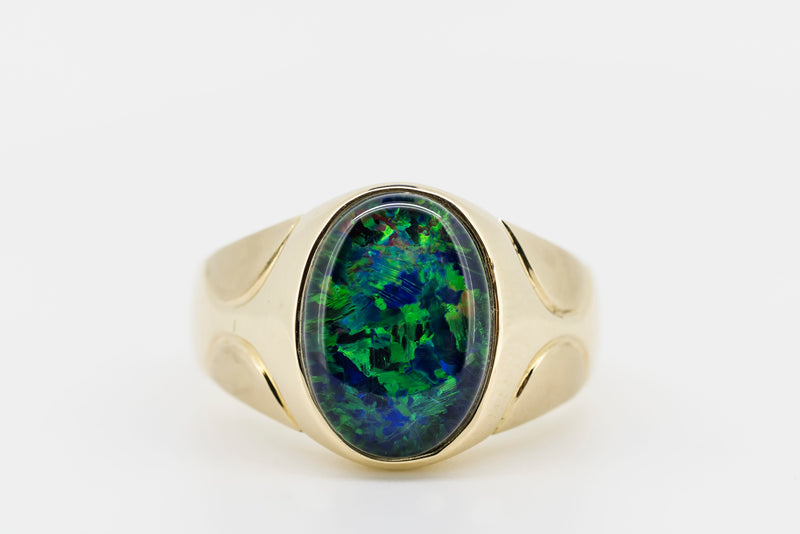 This luxurious 14ct gold ring contains a beautiful white opal, set against a lustrous gold band. Its timeless, classic design makes it the perfect addition to any jewellery collection. Expertly crafted, this opal ring is sure to bring much joy and beauty.