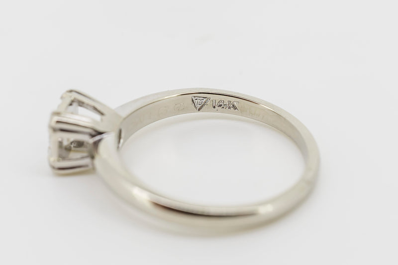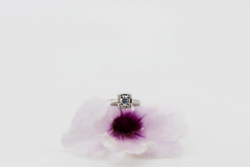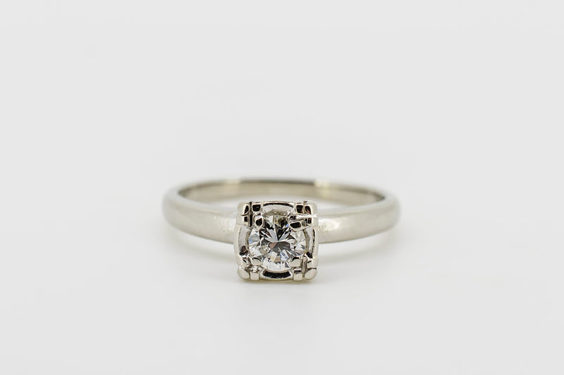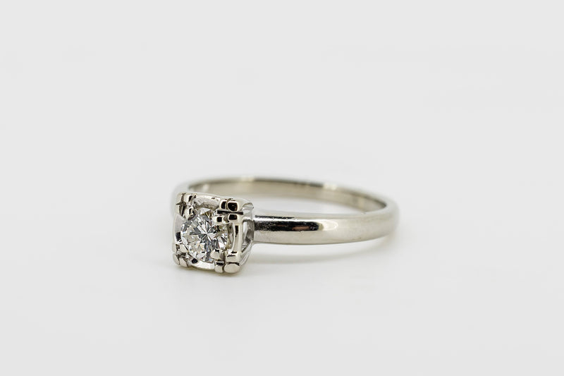 14ct white gold diamond ring. Featuring round brilliant cut diamond, grain set, approximately 0.25ct in weight (4.0mm), SI2 in clarity and G/H in colour.