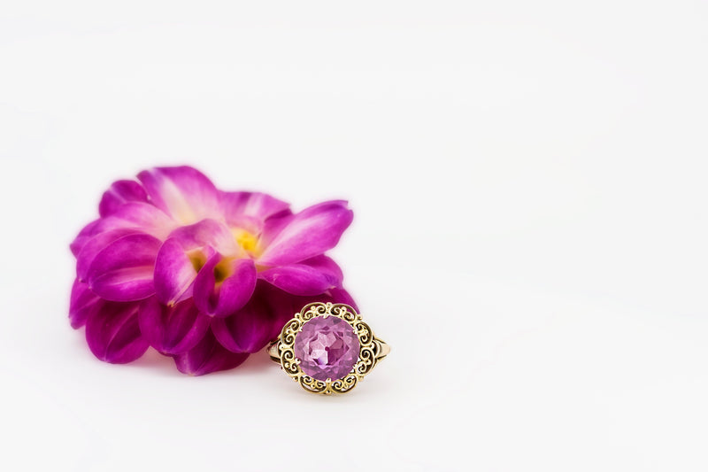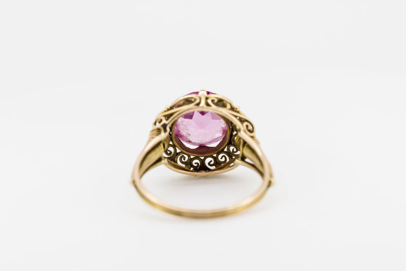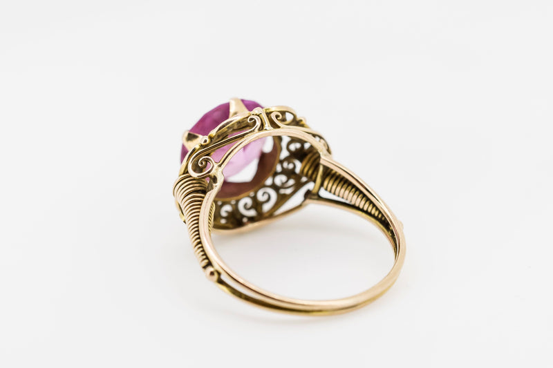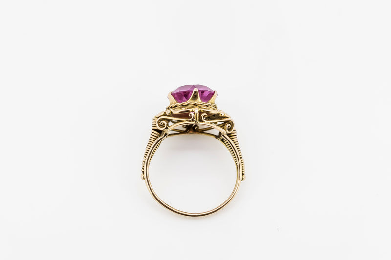 16CT Yellow Gold Antique Ring With Simulant Pink Sapphire #27110