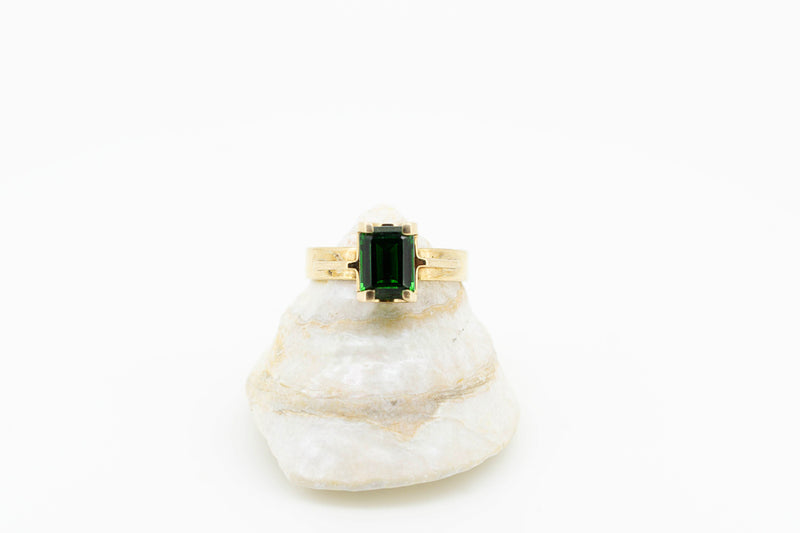9ct Yellow Gold Emerald Cut Green Elbaite Tourmaline