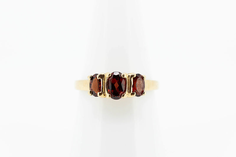 9ct Yellow Gold Trilogy Garnet Ring #27964