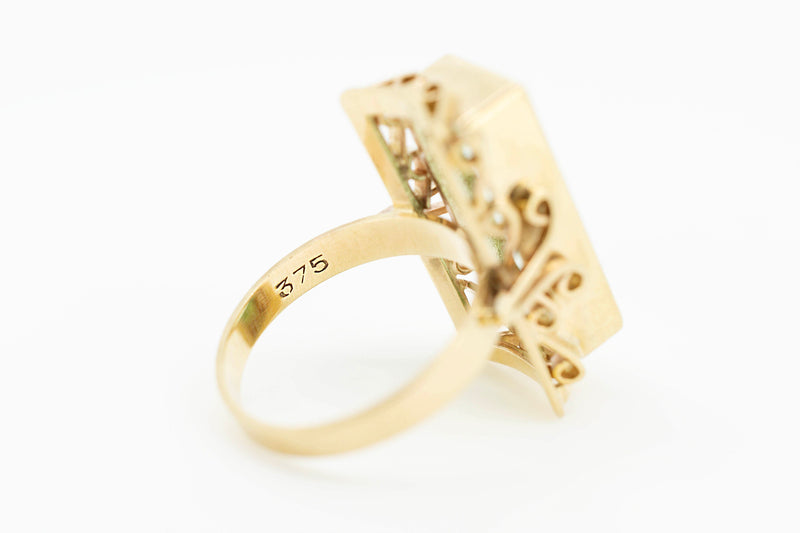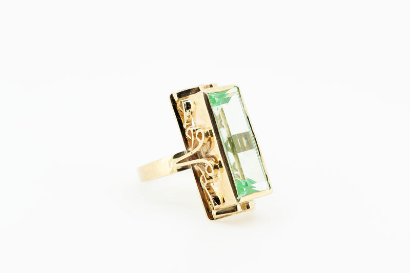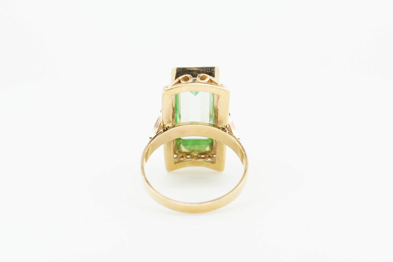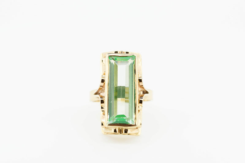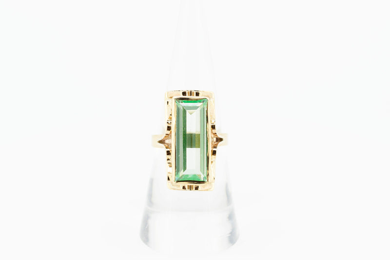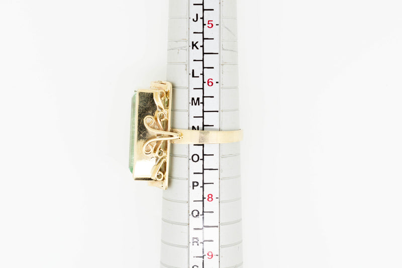 9ct Yellow Gold Rectangle Cut Light Green Elbaite Tourmaline Ring #27900-3
