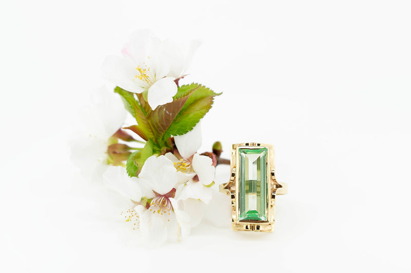 9ct Yellow Gold Rectangle Cut Light Green Elbaite Tourmaline Ring