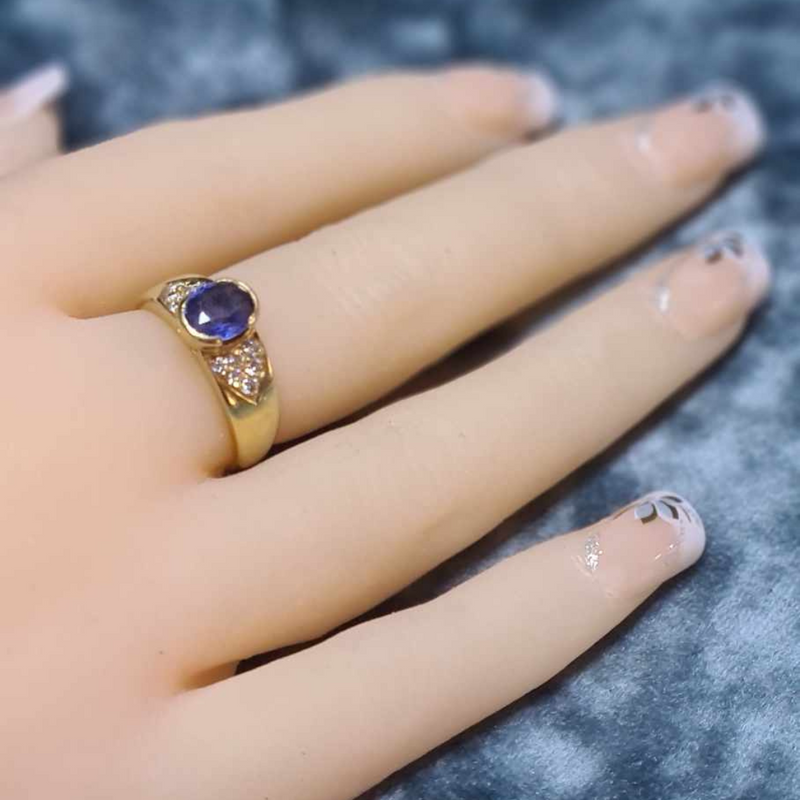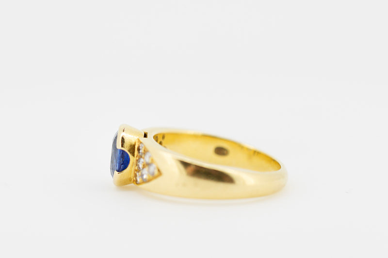 18ct Yellow Gold Blue Sapphire Ring with Diamonds #27392-1