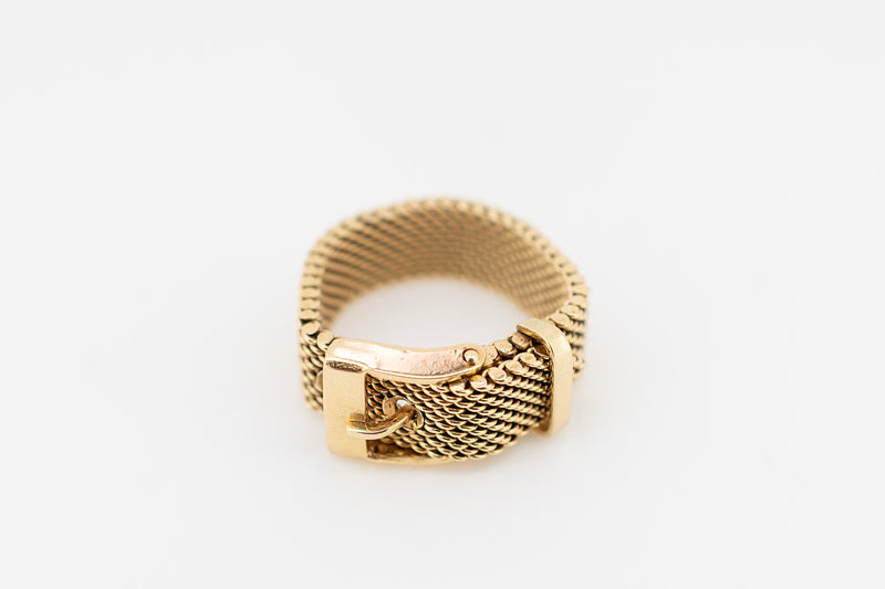 UNIQUE Retro 18ct gold mesh flexible belt and buckle ring which is adjustable.