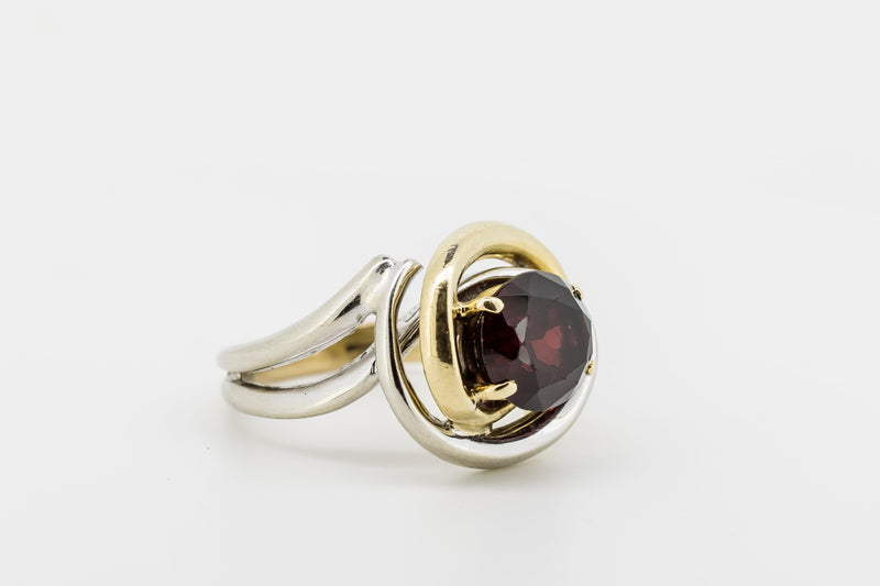 This stylish 14CT Gold custom ring showcases a vibrant garnet, making it the perfect piece to add sparkle to your wardrobe. With its unique design, this elegant ring is sure to make a statement!