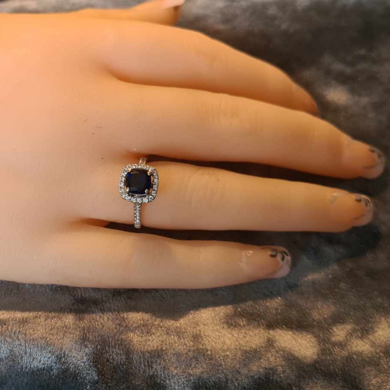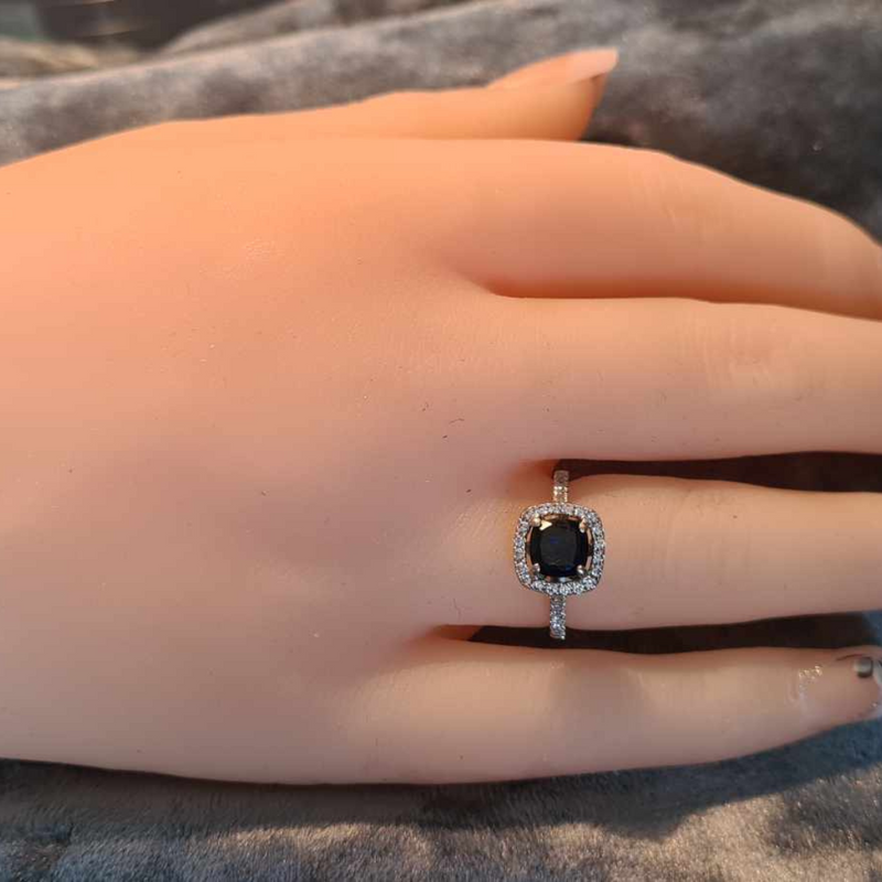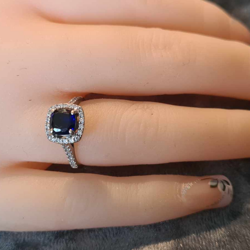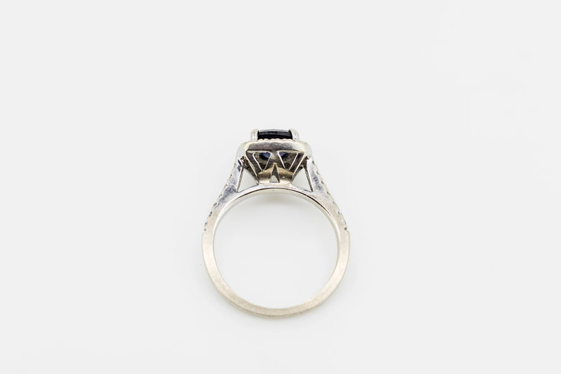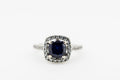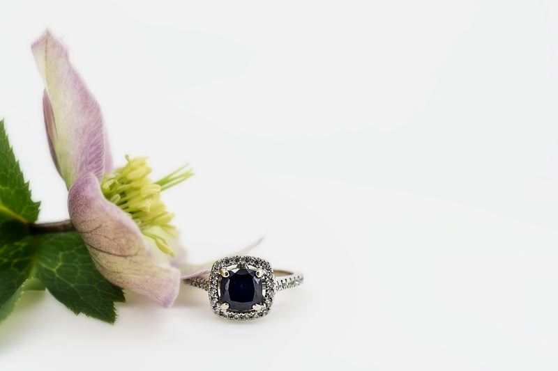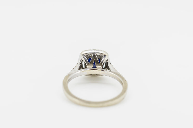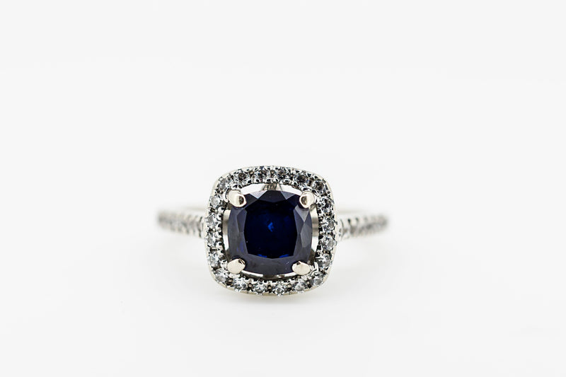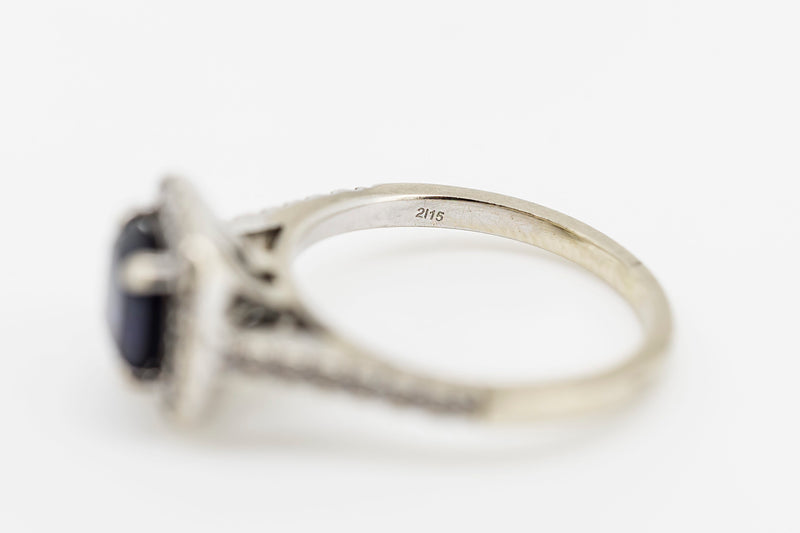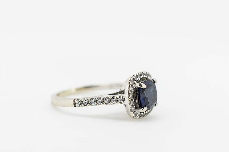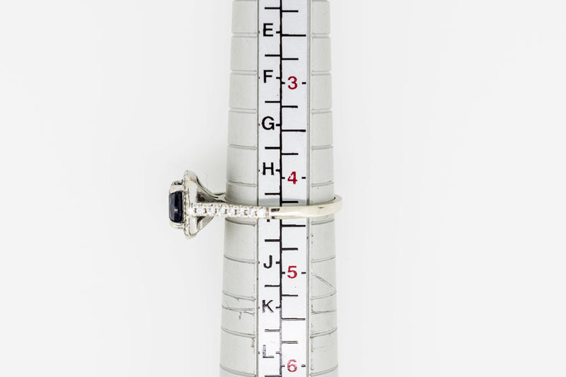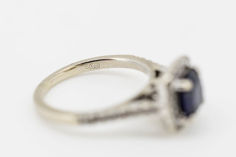 14CT WHITE GOLD HALO RING WITH DEEP BLUE SAPPHIRE & DIAMONDS #K18
