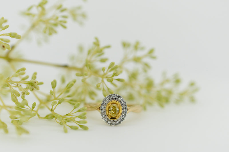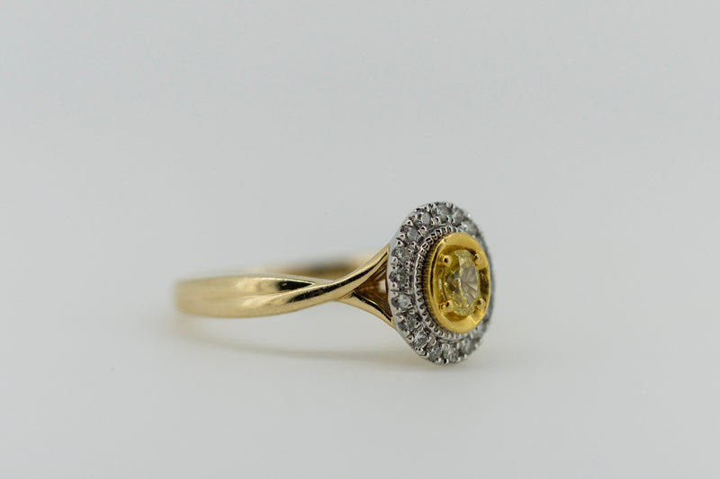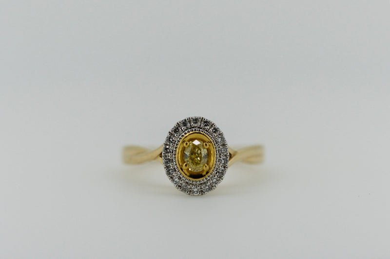 14ct Yellow Gold Halo Ring With 0.34ct Yellow Sapphire and Diamonds #9351
