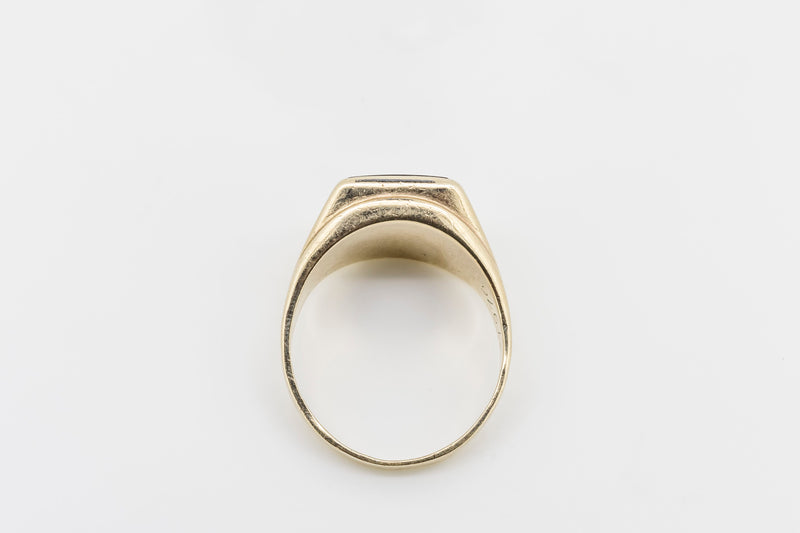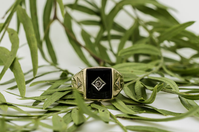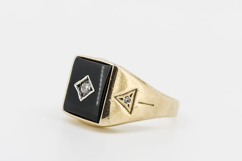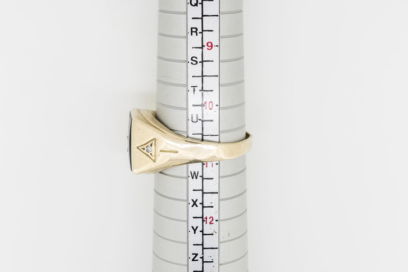 9ct Yellow Gold Large Retro Black Onyx and Diamond Men's Signet Ring #27114