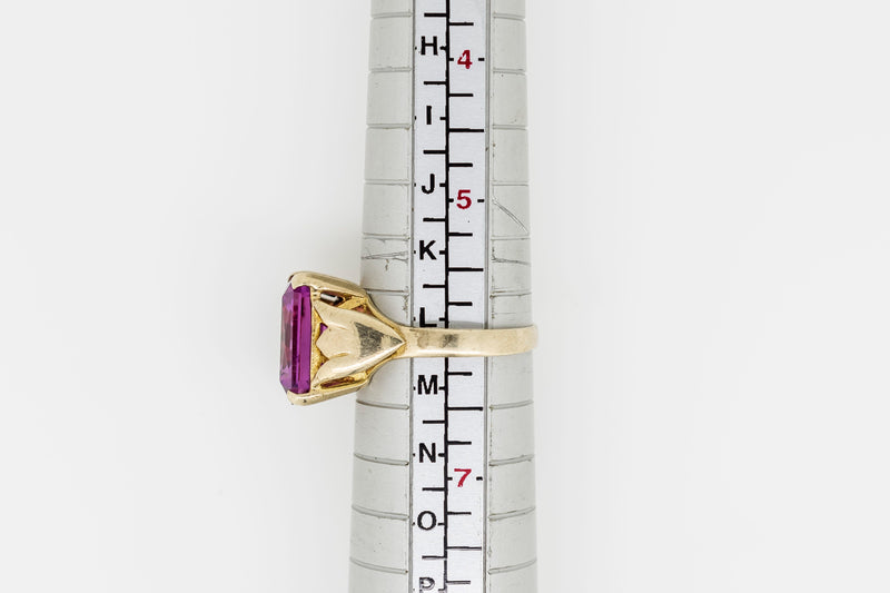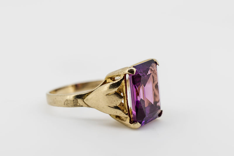 This elegant 9CT gold ring features a stunning glass imitation stone, providing both beauty and durability. With its luxurious design and high-quality materials, it is the perfect statement piece for any occasion. Enjoy the timeless appeal and sophistication this ring brings to your jewelry collection.