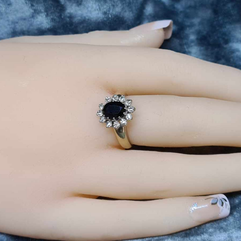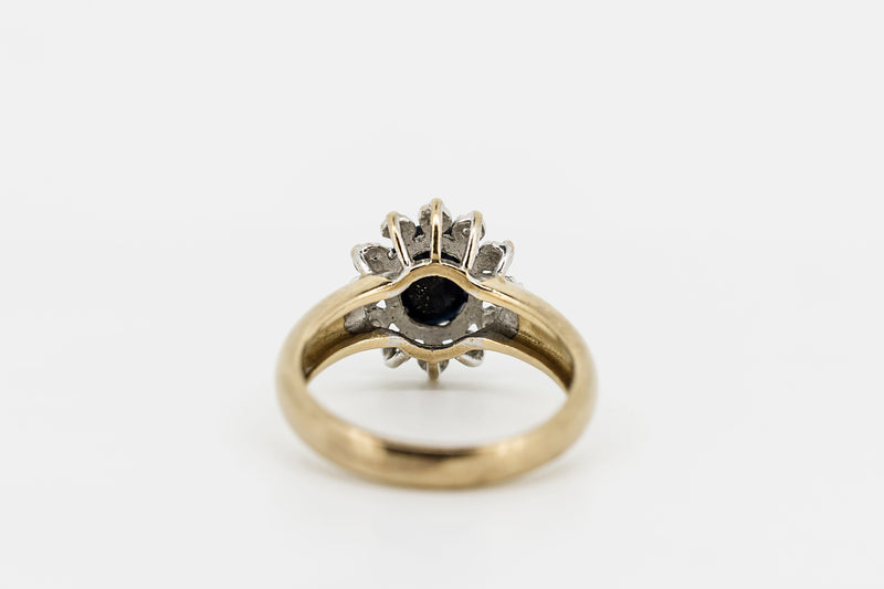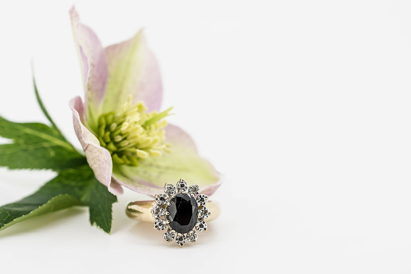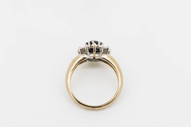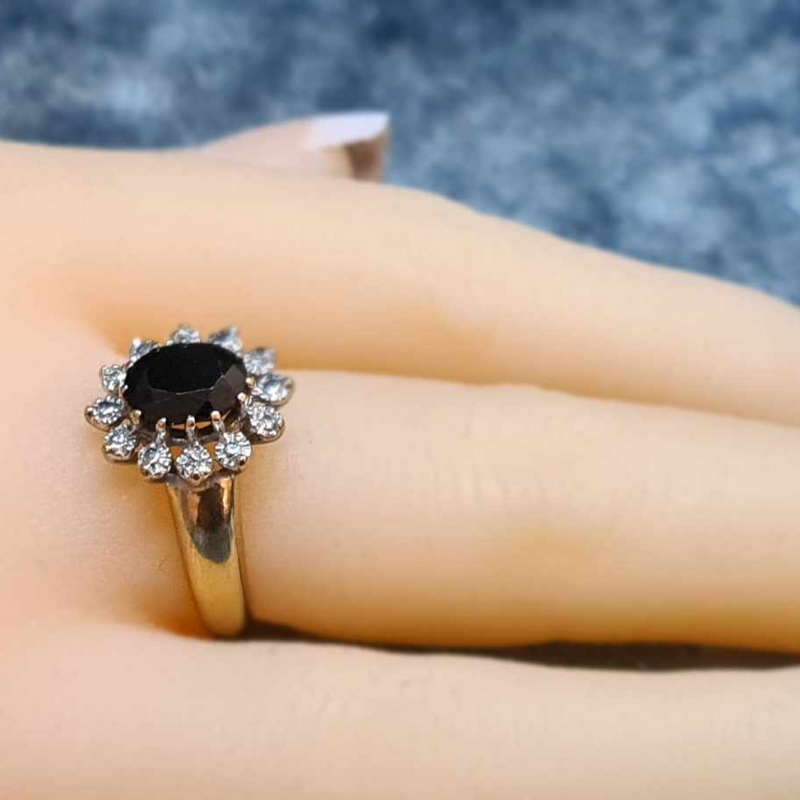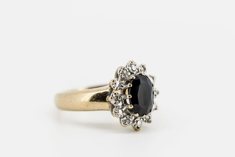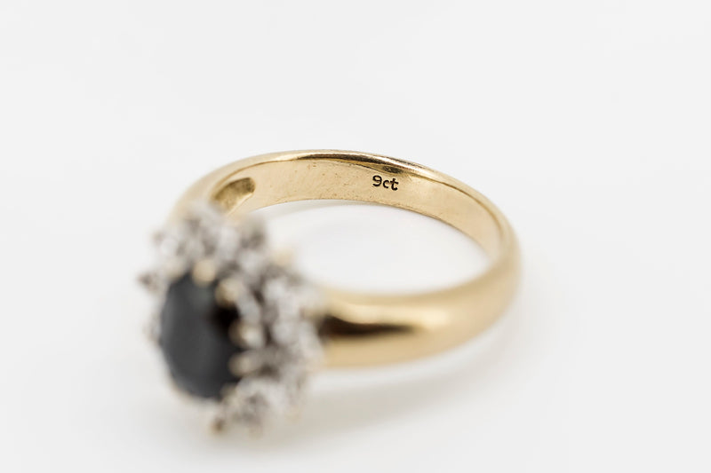 9CT Yellow Gold Ring With Black Agate & Diamonds #26866