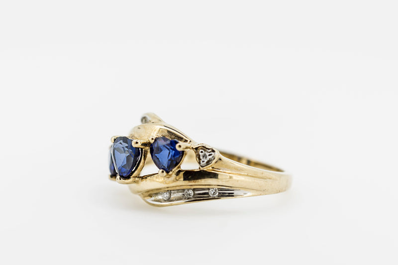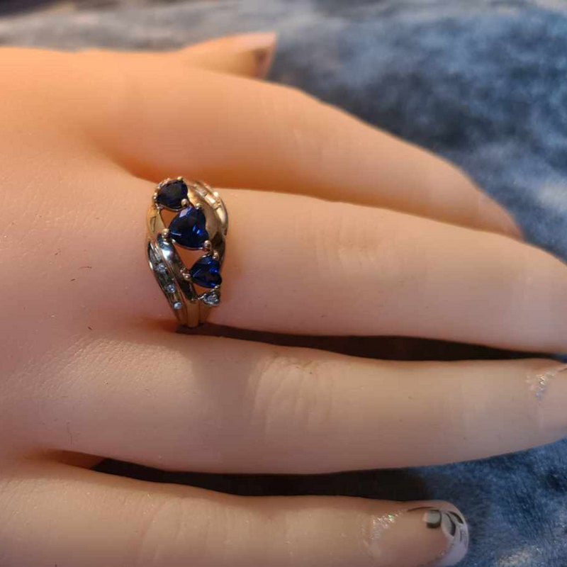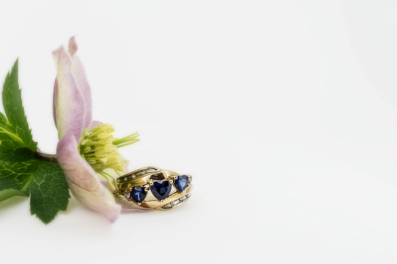 9CT GOLD WITH THREE HEART SHAPED SAPPHIRES #K11