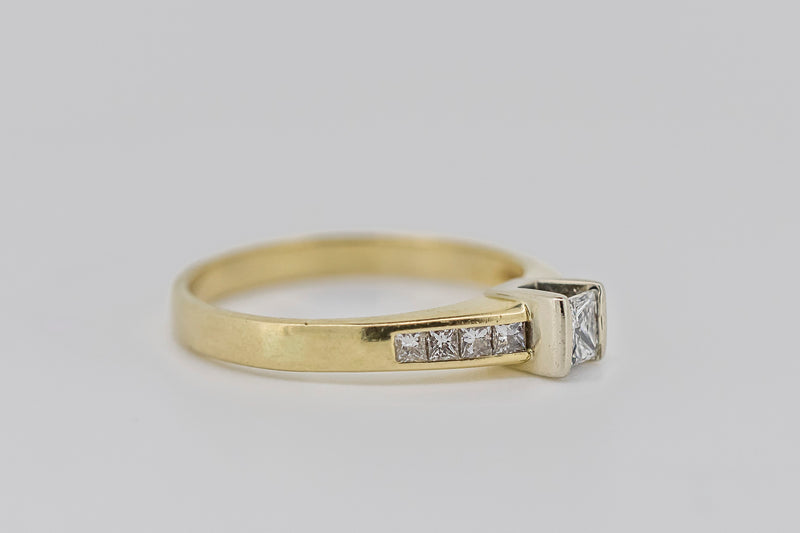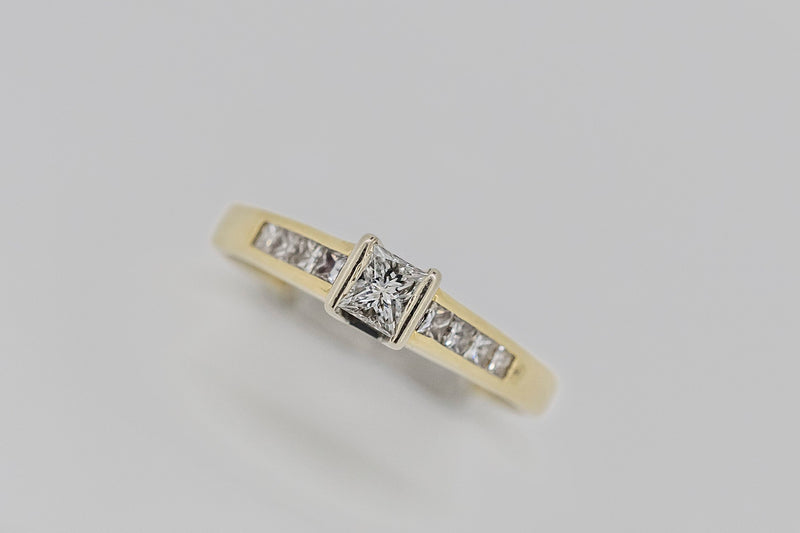 18ct Yellow Gold Princess Cut Diamond Ring With Channel Set Accent Stones #25942-1