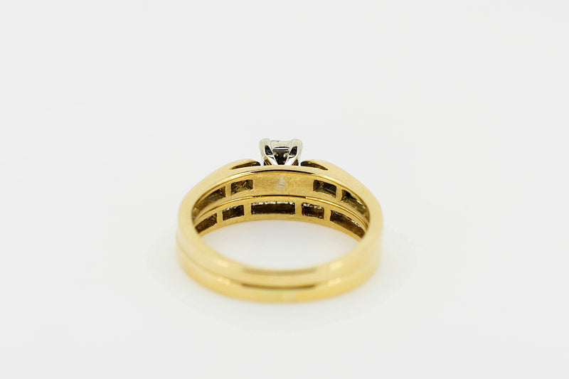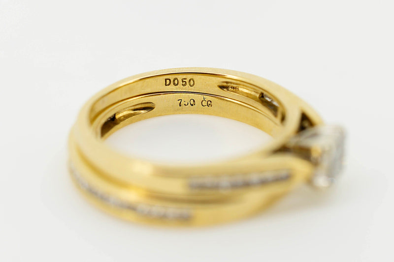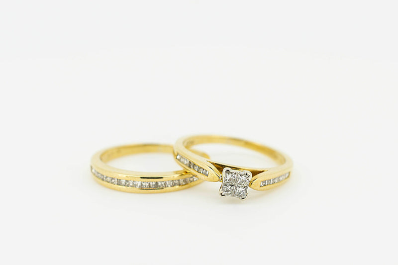 18 ct Yellow Gold Engagement and Wedding Ring Set - Diamonds