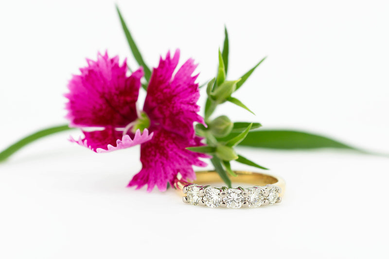 18ct Yellow Gold Ring With French Pave with 5 Diamond Setting