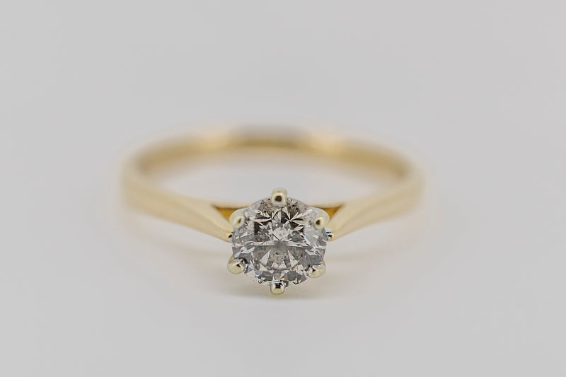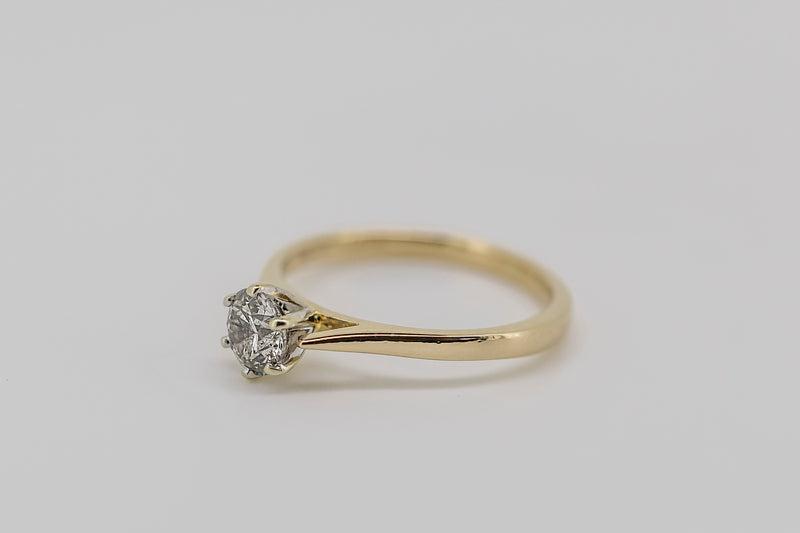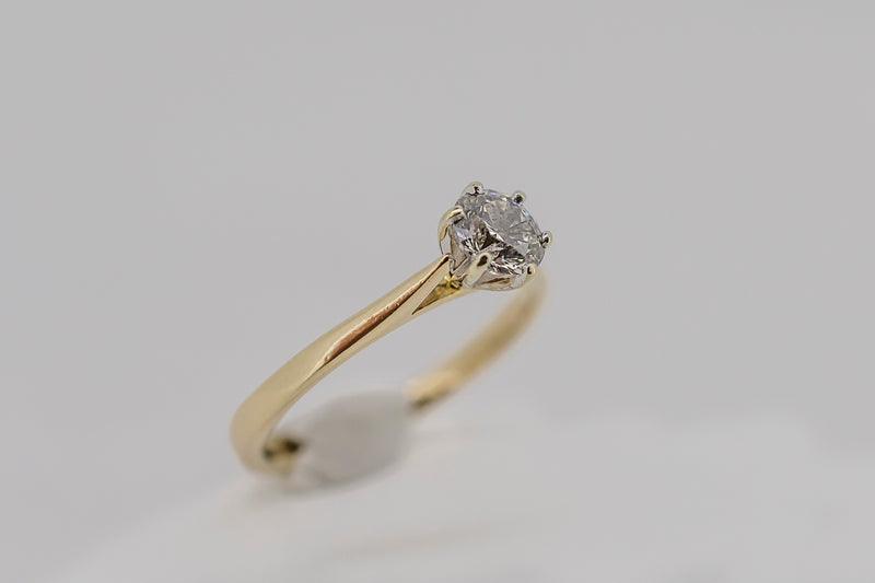 This diamond is beautiful and sparkles well. The white and yellow gold is a complimentary contrast.