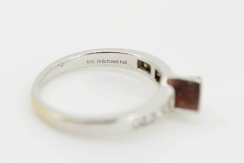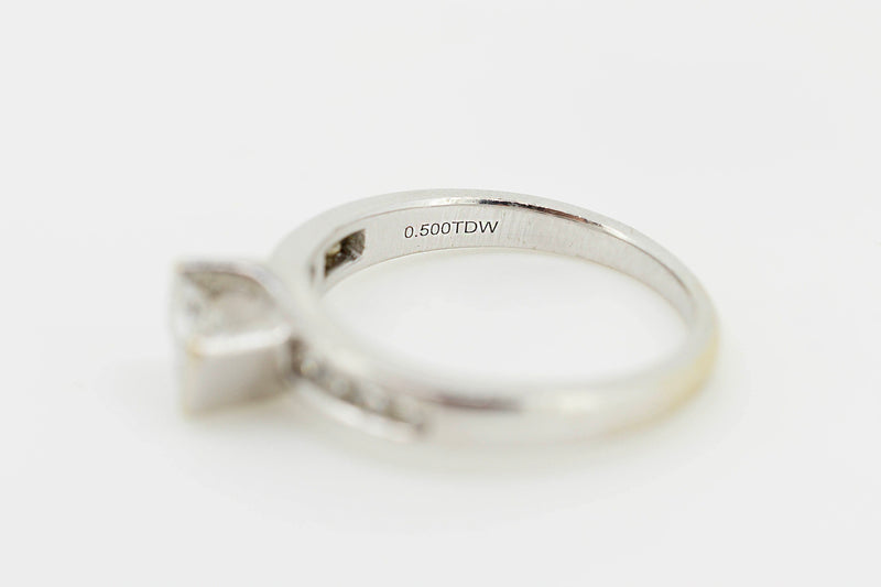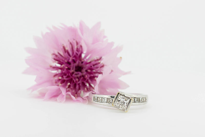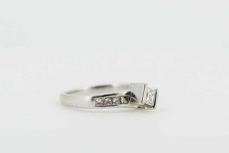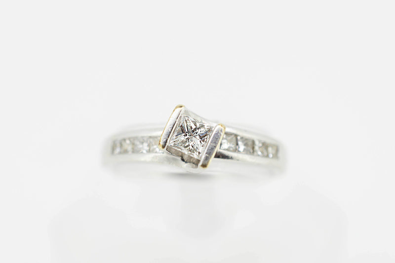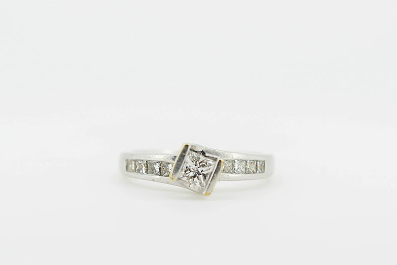 14ct White Gold Solitaire Princess Cut Diamond Ring with Channel Set Accent Diamonds #28023