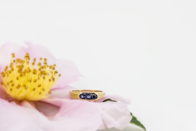 18CT Yellow Gold Ring with Blue 3 Blue Sapphires #SRDS18