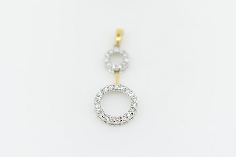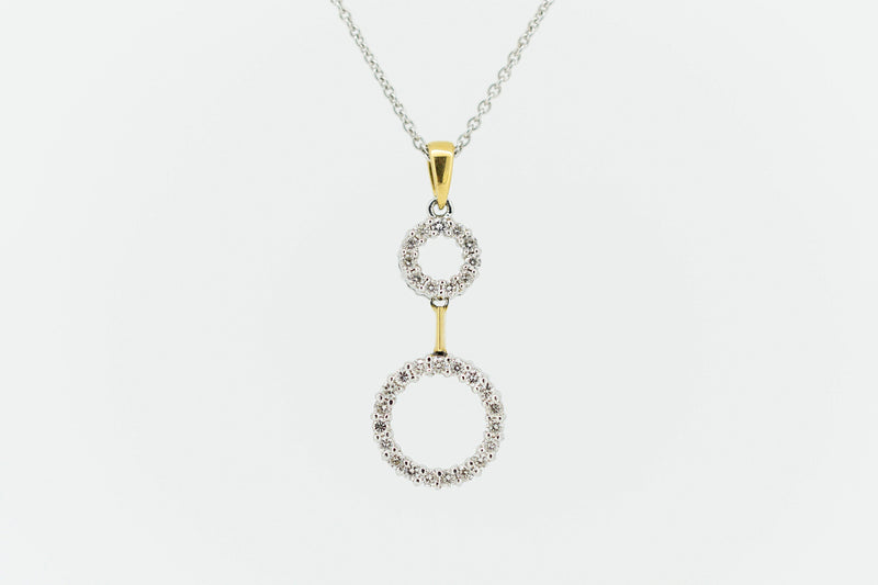 18ct White Gold 2 Circle Diamond Pendant and Chain #25687-a