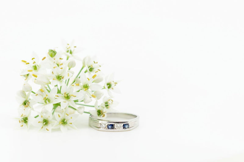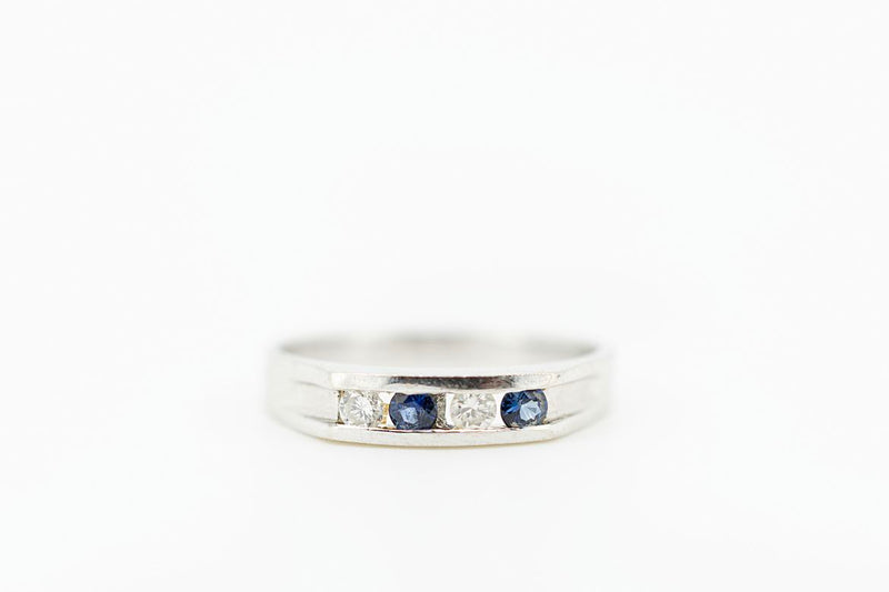 18ct White Gold Ring with Blue Sapphire and Diamonds #27432