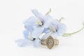 Pierced gallery. Shank: tapered, squared profile; shoulders becoming raised. Polished finish.