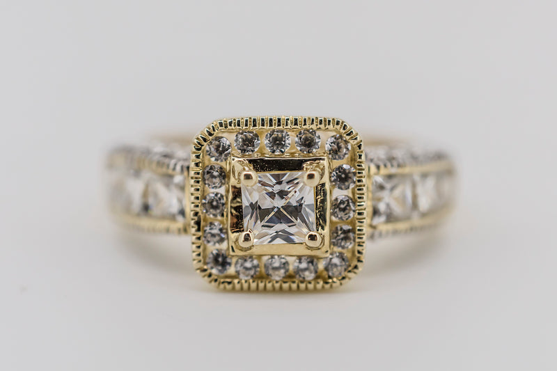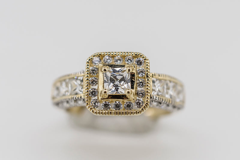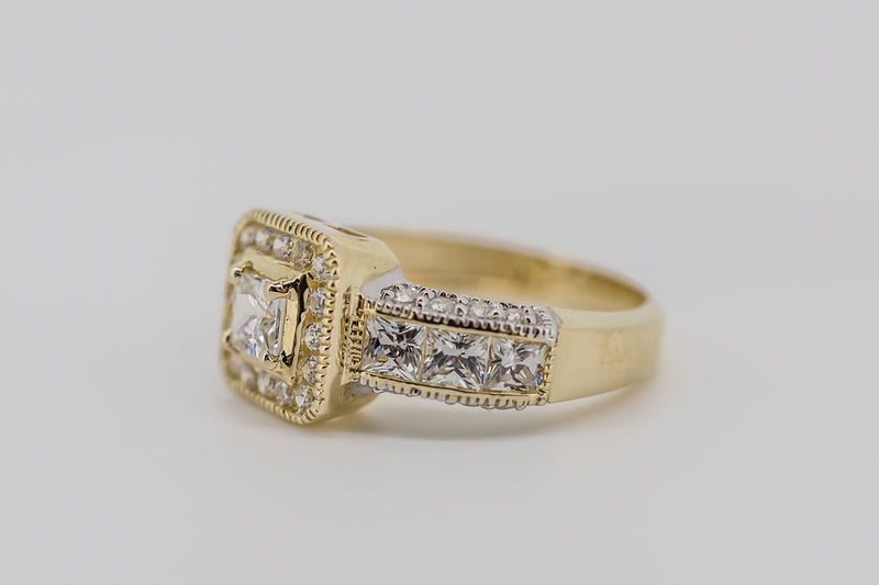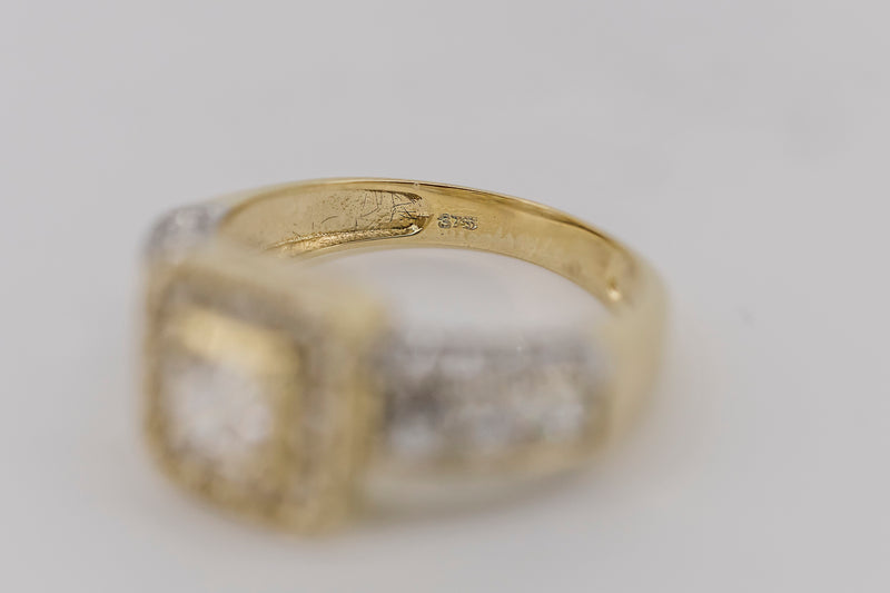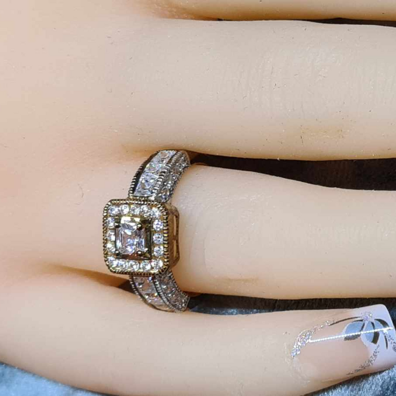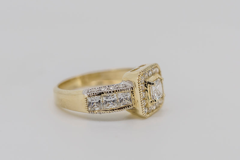 This is a very pretty gold and CZ ring with a total of 38 stones make this a stand out piece. If you want to be noticed then this is the one to wear.
