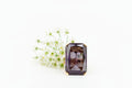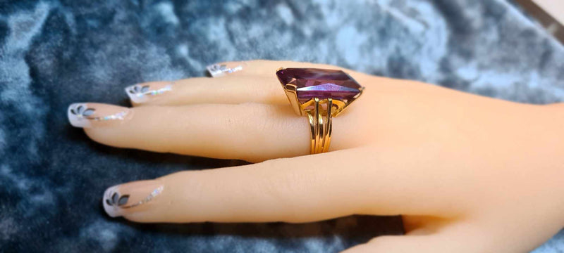 The stone is 2.5cm x 1.7cm. The ring stands1.3cm off the finger.