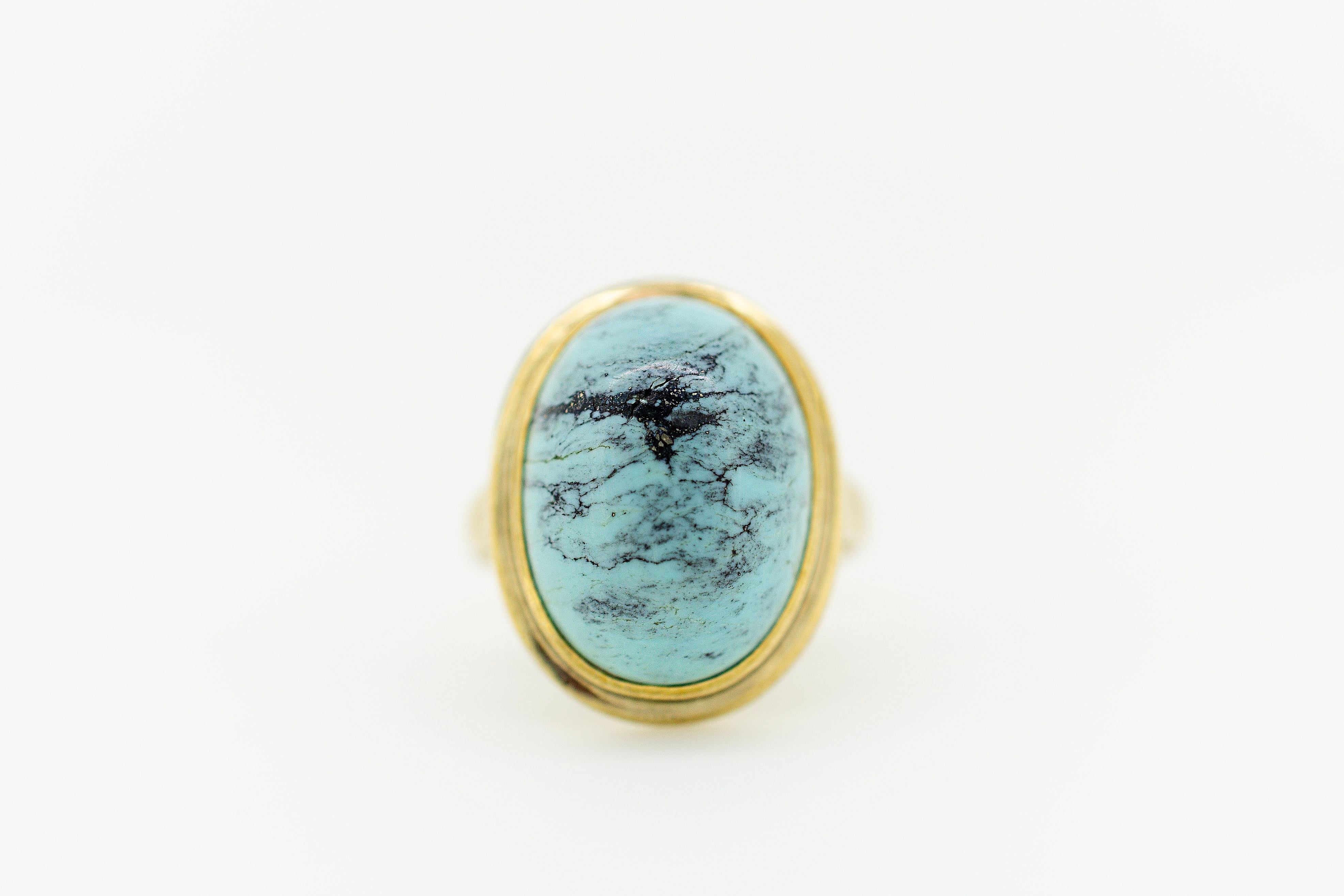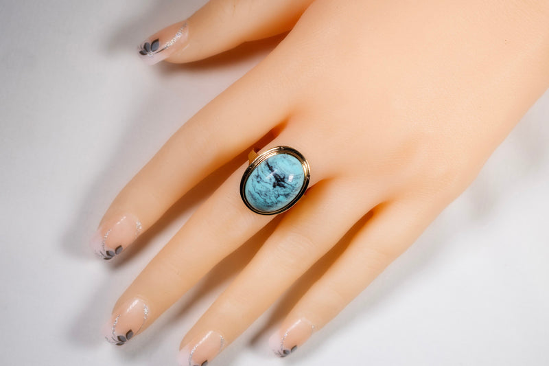 14ct Yellow Gold African Turquoise Cocktail Ring #9368