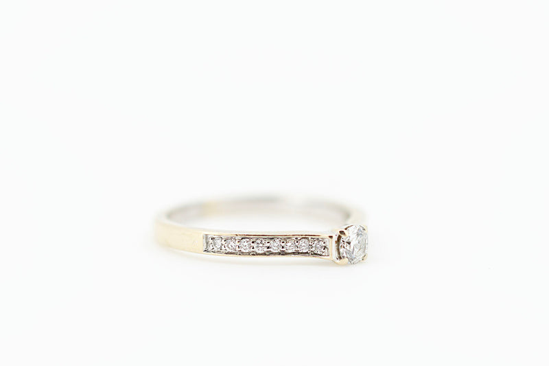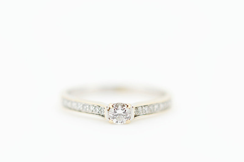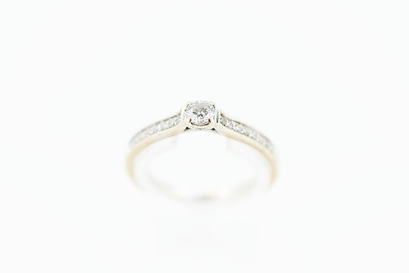 18ct Solitaire Diamond with Channel Set Accent Diamonds on Shoulder