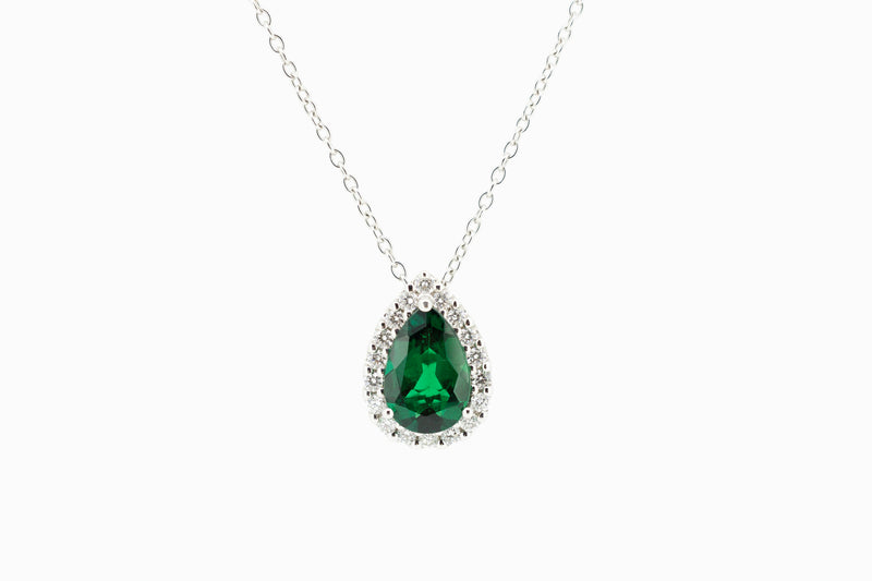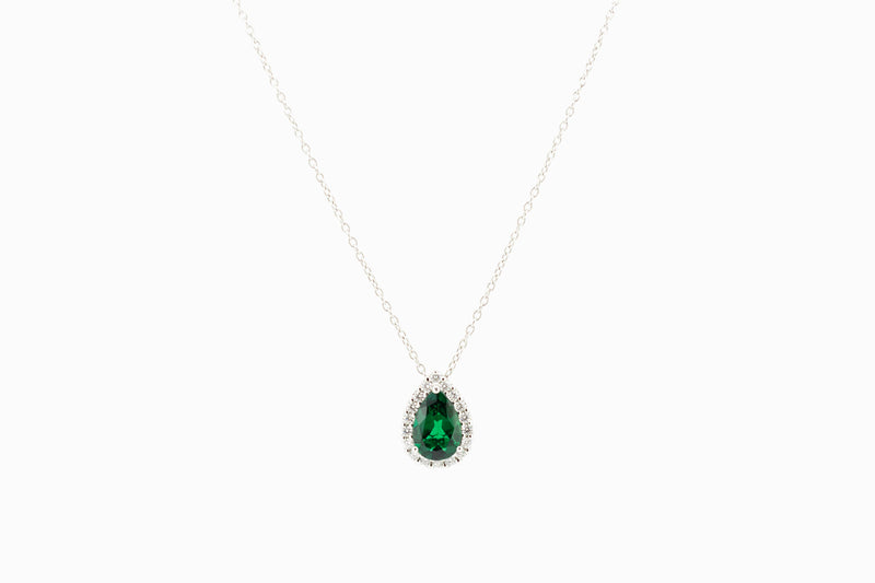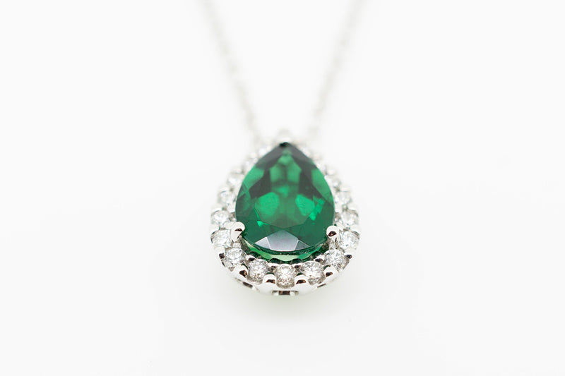 18ct white gold necklace with Lab created emerald and diamonds #synthem