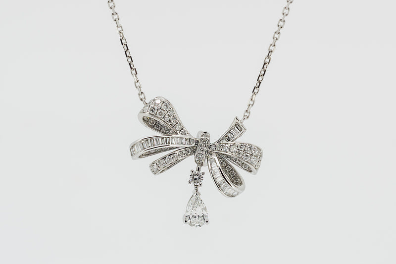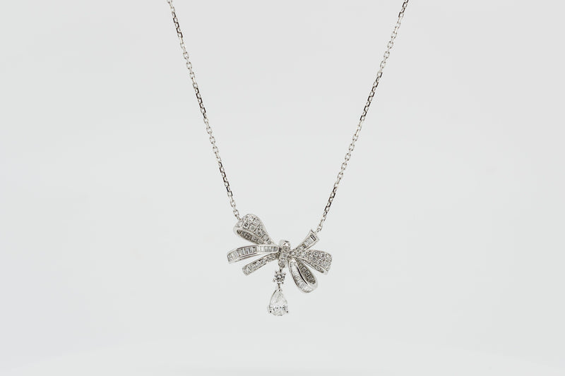 This 18CT white gold necklace and pendant set is both timeless and sophisticated. Diamonds are set into the pendant and the necklace, giving it a sparkle that will last forever. Perfect for any occasion.