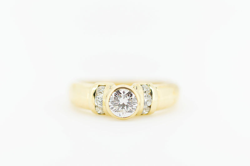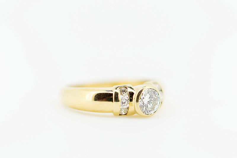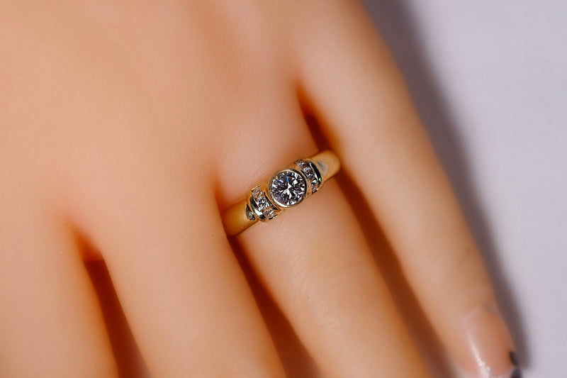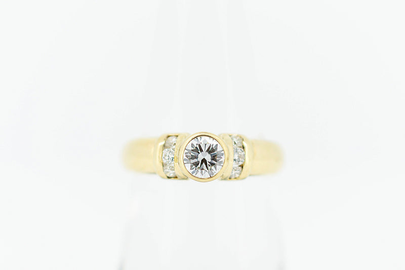 18ct Yellow Gold Round Bezel Set Diamond with 6 Accent Stones #42190