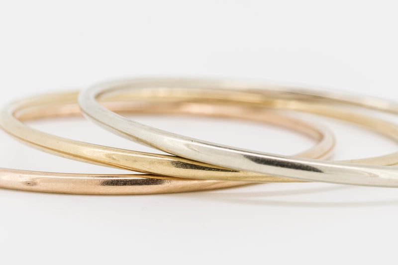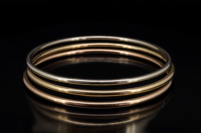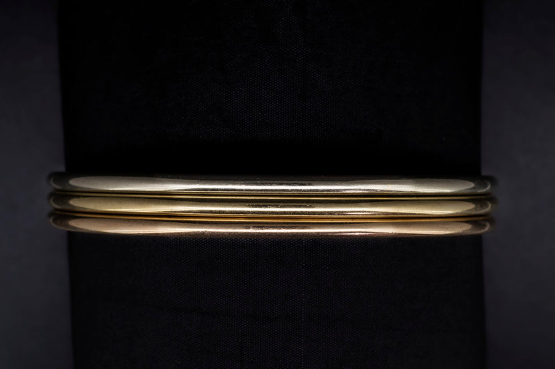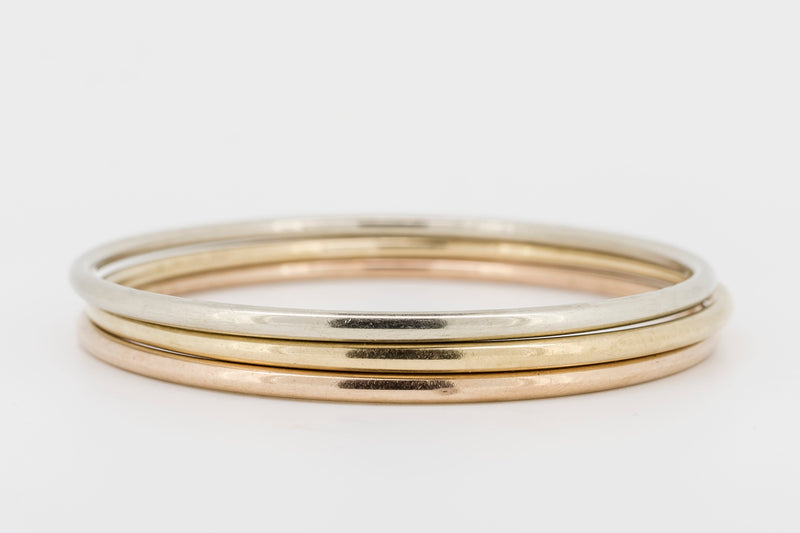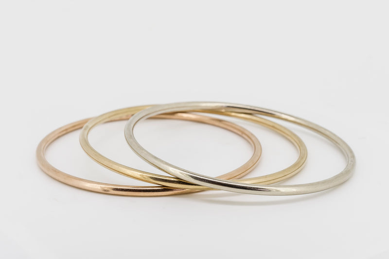 9CT GOLD BANGLES IN ROSE, YELLOW AND WHITE GOLD