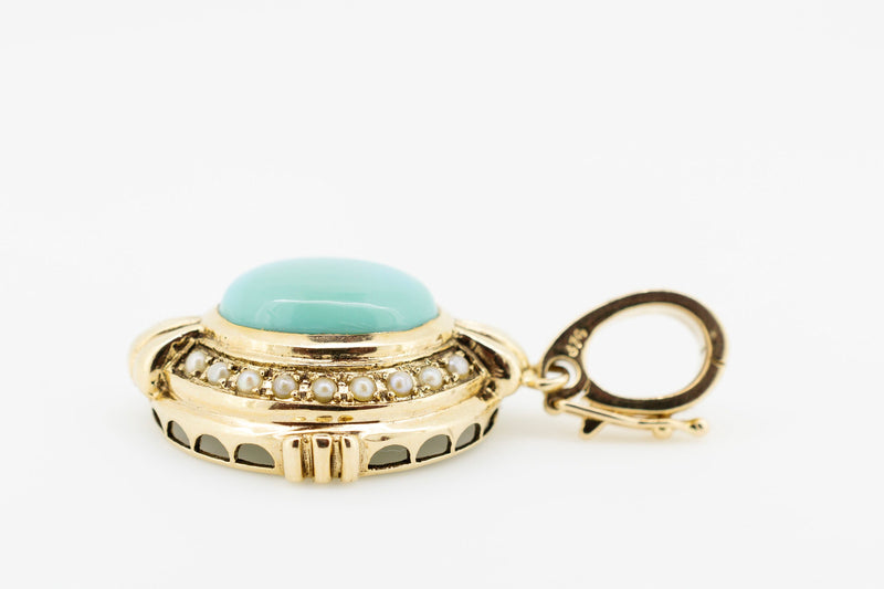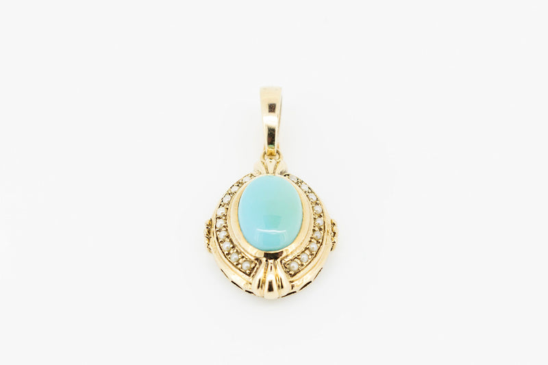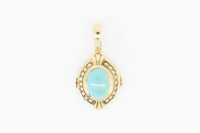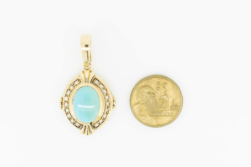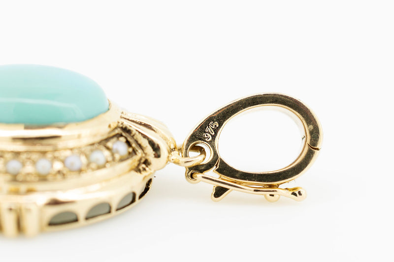 9ct Yellow Gold Pendant with Turquoise Centre Stone and Pearl Accent Stones #27616
