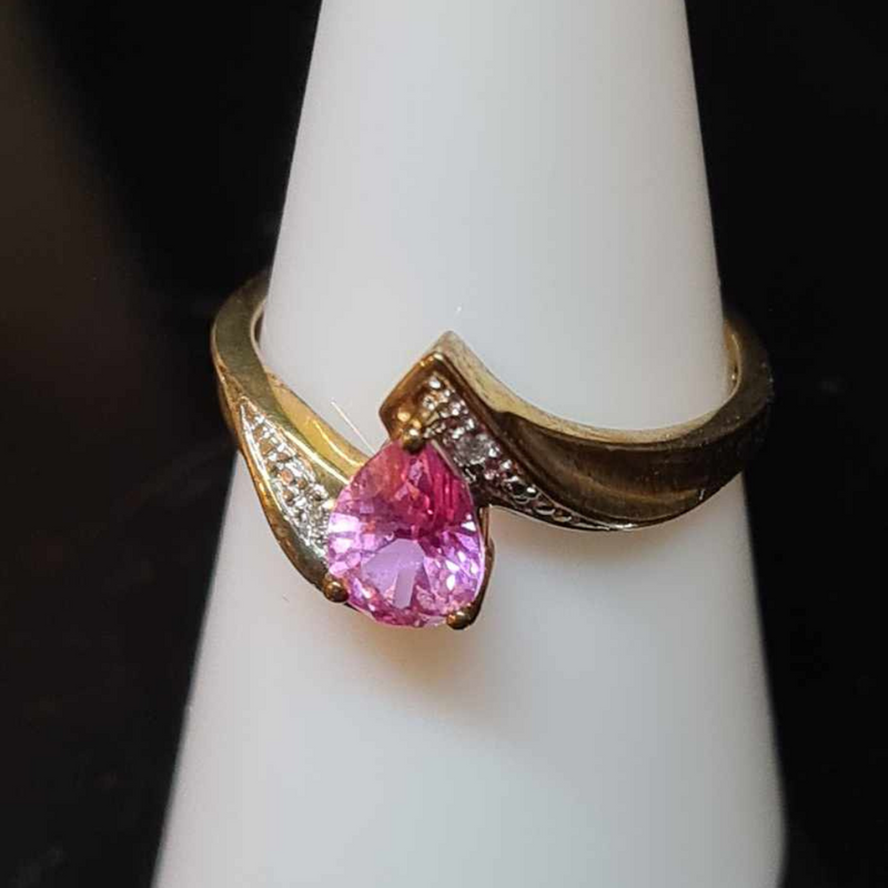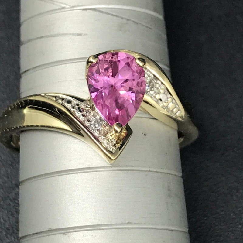 9ct Yellow Gold Pear-Shaped Pink Sapphire and Diamond Ring #25815-5