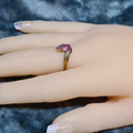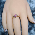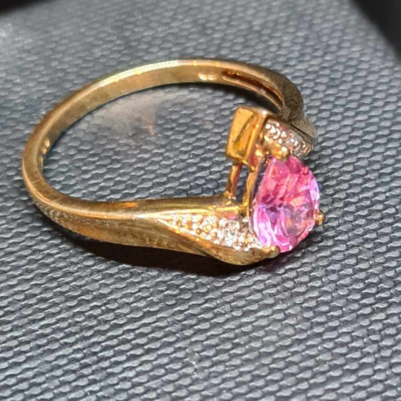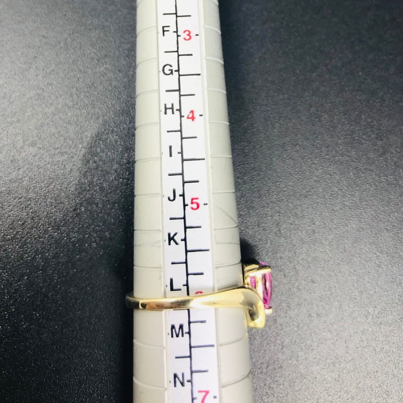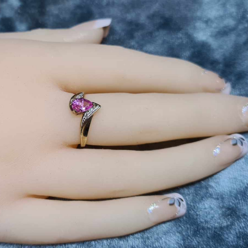 A graceful ring with the marrying of 9CT Yellow Gold and Pink Sapphire complimented with diamonds.