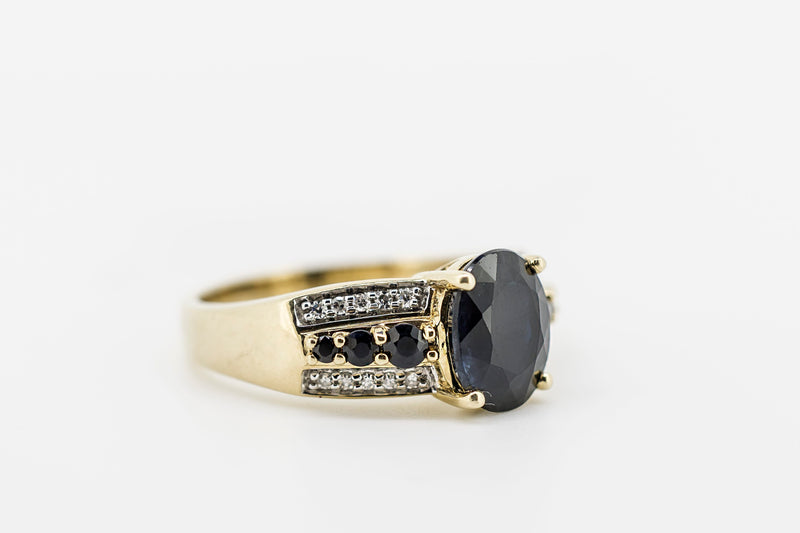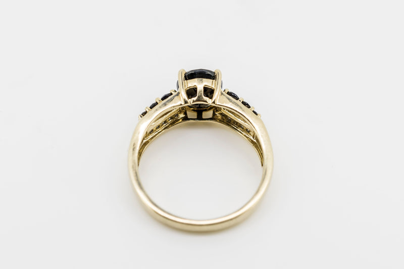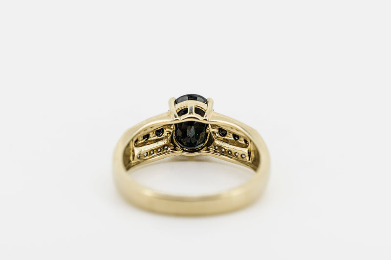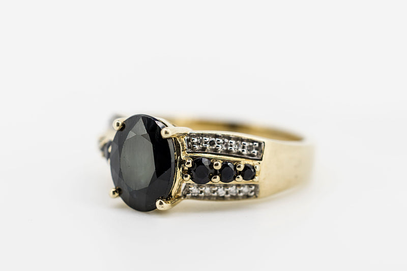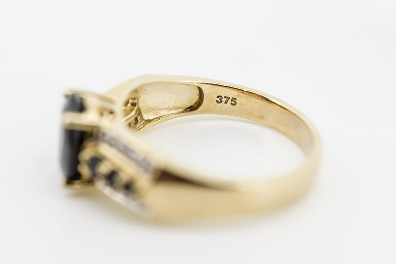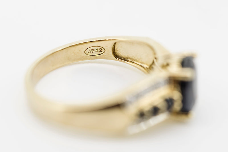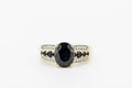9CT Yellow Gold Ring With Black Agate and Diamond #26890-2